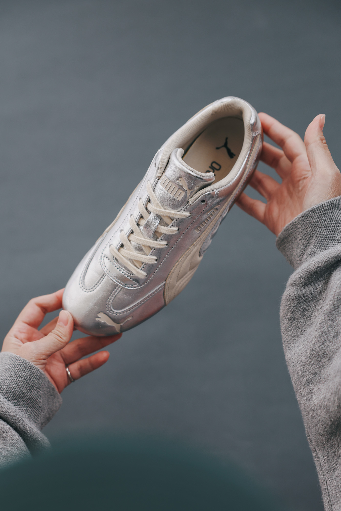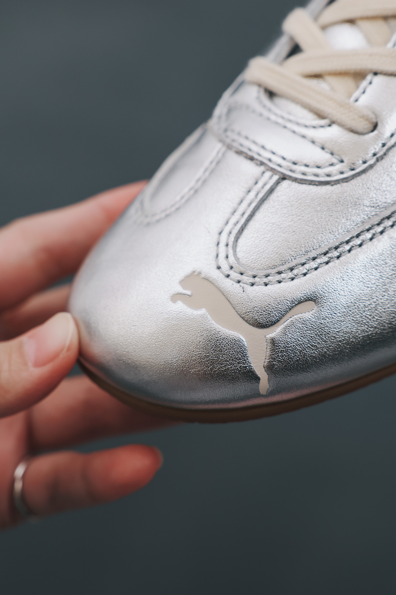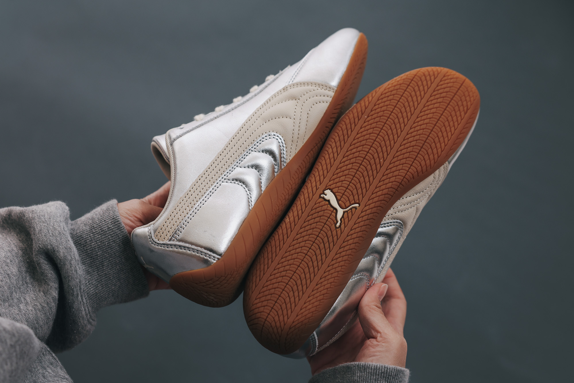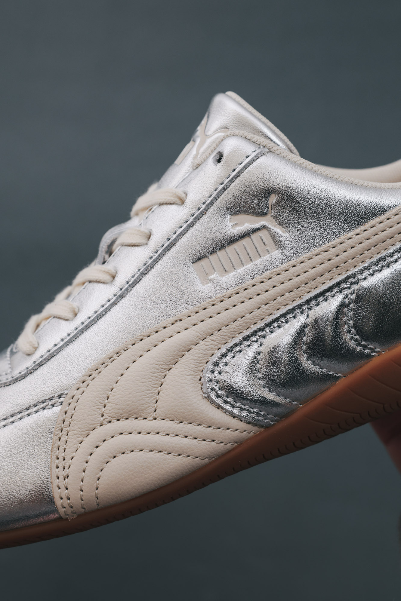 PUMA SPEEDCAT 從來不是給慢速人生穿的,更適合那些瞭解背景故事的同時,關注著最新趨勢的人,因為 SPEEDCAT 是懂得與時俱進的。例如這雙 SPEEDCAT Silver 奢光銀,保留 SPEEDCAT 流線輪廓,結合了有著節慶氛圍的閃亮銀色,焦糖色鞋底讓整雙鞋稍微「收」了一下,不會太過張揚,手提著 PUMA 1976 Pocket 手提小包,逛街跑趴都適合。
