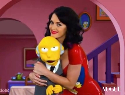 12月初,耶誕氣氛已經愈來愈濃厚了!從1989年底播出至今,已有長達21年歷史的知名動畫節目《辛普森家族The Simpsons》,在12/5的假日耶誕特別節目中,來了一位身穿紅色低胸PVC辛普森家族緊身衣的嬌俏來賓─剛被提名葛萊美最佳歌手等獎項的凱蒂佩芮(Katy Perry)。在節目中凱蒂佩芮(Katy Perry)不但搞笑與辛普森家族成員們合唱〈The 39 Days of Christmas〉,還與她的玩偶男友Moe來了一段有點令人想入非非的黑色幽默。首先是Moe正在為家族小朋友們吵著要去夏威夷玩而不高興,這時凱蒂佩芮(Katy Perry)說:「有人非常需要一個擁抱。」並且彎下腰將男友Moe簇擁在胸前,飄飄入仙的Moe便什麼都說好;而結束時最後一幕,Moe想要親吻凱蒂佩芮(Katy Perry)的嘴唇,無奈自己太矮,跳躍半天後決定放棄,「那麼我親妳的腹部好了!」Moe說著並將臉往凱蒂佩芮(Katy Perry)的胯下塞,凱蒂佩芮(Katy Perry)驚呼「那不是我的腹部!」「但我沒叫你停止…!」真不知道她的正牌丈夫羅素布蘭德(Russell Brand)會不會吃醋?