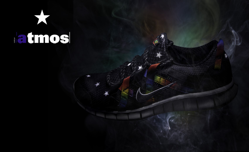 跑鞋的風潮已經不知不覺的滲入了街頭風格之中,知名鞋鋪 atmos 這次和 Nike 和作的最新鞋款,使用的就是慢跑鞋款 Nike Free Powerlines ,其優異的運動性加上輕巧柔軟的 Free 鞋底,給腳部優質的穿著體驗,設計方面,滿布的星星圖騰與彩虹織帶讓搶眼度倍增,在多處也都使用彩虹概念的色彩注入,鞋底所使用的彩紅馬賽克也非常吸引人,讓人聯想到藤原浩曾使用過的設計,具有注目度與舒適穿著感的優異好鞋。