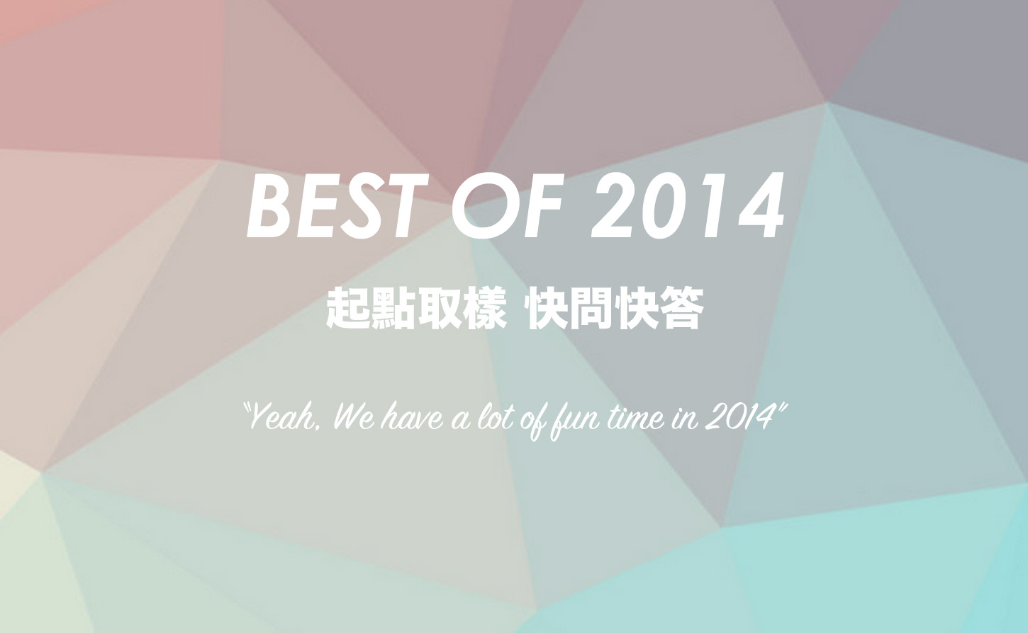 “Best of 2014 起點取樣 快問快答” 將從現在啟持續開放至 2014/12/31,趕快透過頁面下方的互動問卷告訴我們屬於你的 2014 回顧!