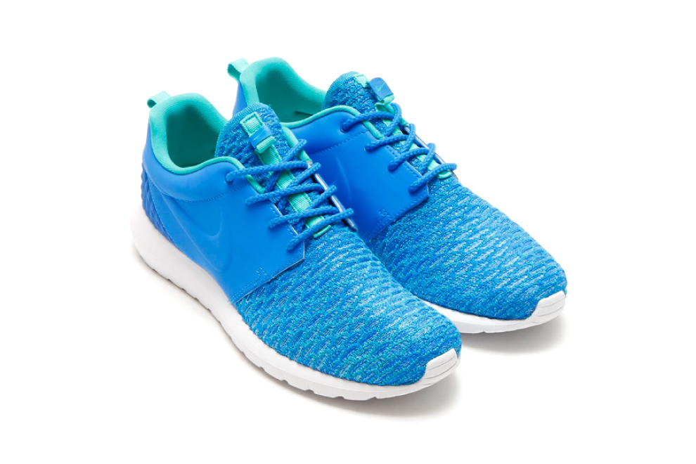 NIKE 再度以極具人氣的鞋款 Roshe One 的輪廓為基調,推出 Roshe Flyknit PRM “Tonal” Pack,採用 Flyknit 的革新技術鞋身並且將鞋身的重量再往下減輕,並於鞋側拼接上高級皮革,讓整體鞋身有兩種不同色度的顏色漸層視覺效果,其中最推薦的就是 PHOTO BLUE / SOAR-ATOMIC TEAL 配色,Flyknit 材質以天藍色與湖水綠交織,並於鞋舌與內裡用湖水綠加以點綴,不僅亮眼且充滿夏日氣息。