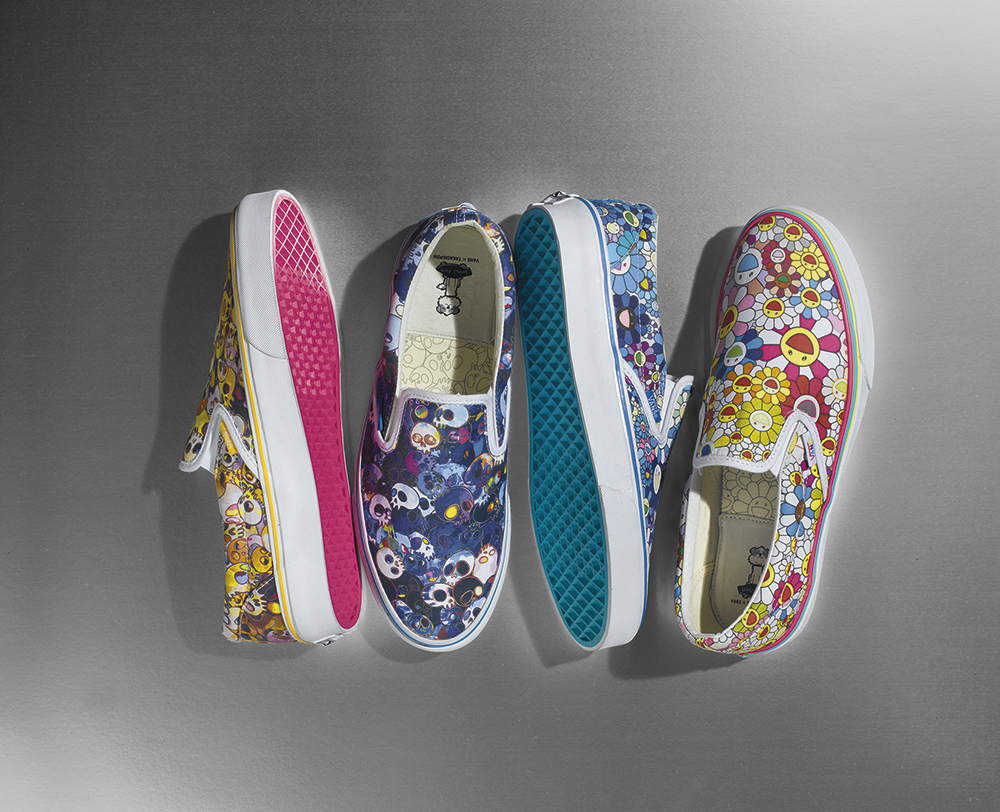 日本當代的知名藝術家村上隆作品豐富且多元,帶有濃厚的卡通漫畫色彩是他個人最顯著的呈現印象,加上反映了日本許多次文化的現象呈現,可愛之中卻有著反諷味道,讓村上隆在國際中成為一位頗具盛名的藝術家;而近年來心力轉向商業的村上隆,也與許多知名大牌進行聯名合作,在 2015 夏季,街頭運動品牌 Vans 特別找來村上隆攜手合作,本次系列是 Vans 最高等級 Vault 系列,最受注目的鞋款部分採用 Slip-on 做為基調,分別將村上隆招牌的太陽花、骷髏塗鴉繽紛的放置鞋面上,再對應到不同顏色的組合,極富村上隆個人色彩美學的跨界合作,相對應也有非常可愛的小孩尺寸,同樣也是 Slip-On 方便穿脫性,鮮豔的色系讓孩童穿起來更為可愛;本次還有製作了聯名 T-Shirt、以及滑板可供選擇,精采的聯名系列就在 7/17 本週六全部展開!