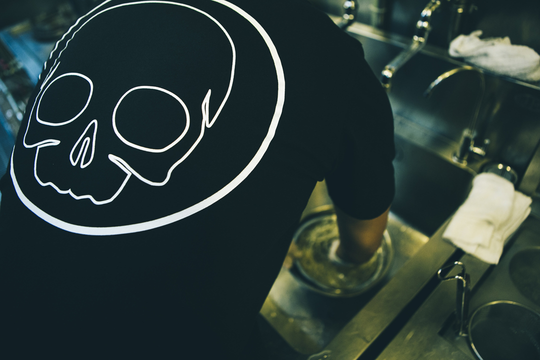 在炎神拉麵的制服設計上,OVKLAB 選用了易於工作穿著的 T-shirt 與工作襯衫二種款式,來呈現炎神拉麵的專業精神,並且以雙方品牌的代表色 – 黑色,作為主要使用的色彩。T-shirt