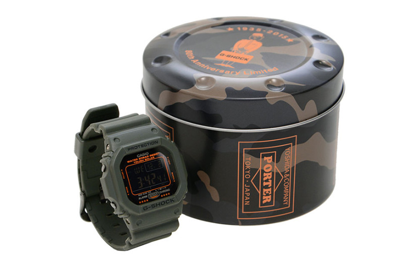 上一回我們介紹了 G-SHOCK 新年紅黑配色系列錶履,以一針入魂注入其製包理念的吉田公司因應創業 80 週年與 G – SHOCK 合作,將承襲 G-SHOCK 初代設計的 5600 太陽能錶為基礎融合吉田包特色推出 PORTER x G-SHOCK 聯乘腕錶作為日本吉田包創業 80 週年的超值紀念。除將包款內襯的代表橘色用於盒身輔以 PORTER 單字代表的 logo 與行李伕圖樣,迷彩的鐵盒中裝盛帶橄欖綠和一絲亮眼橘色的 G-SHOCK 5600,錶面液晶上點綴著代表 80 周年的 8 顆星設計,裏蓋更有復刻「 80th ANNIVERSARY Limited 」文字,和刻有提著 PORTER 行李箱的微笑 PORTER MAN 驚喜,滿滿的細節不只方便搭配更是收藏迷不容錯過的話題單品。