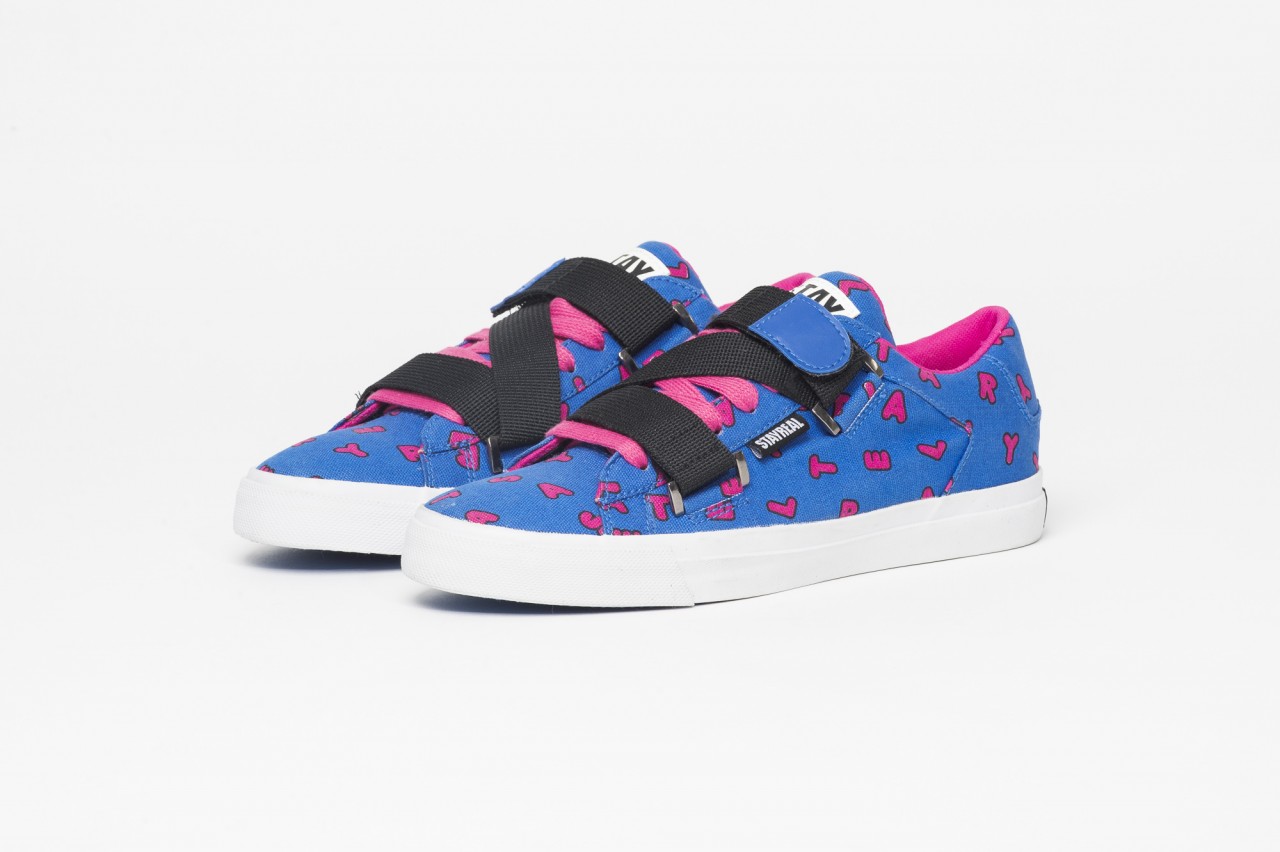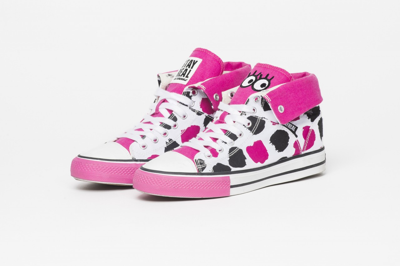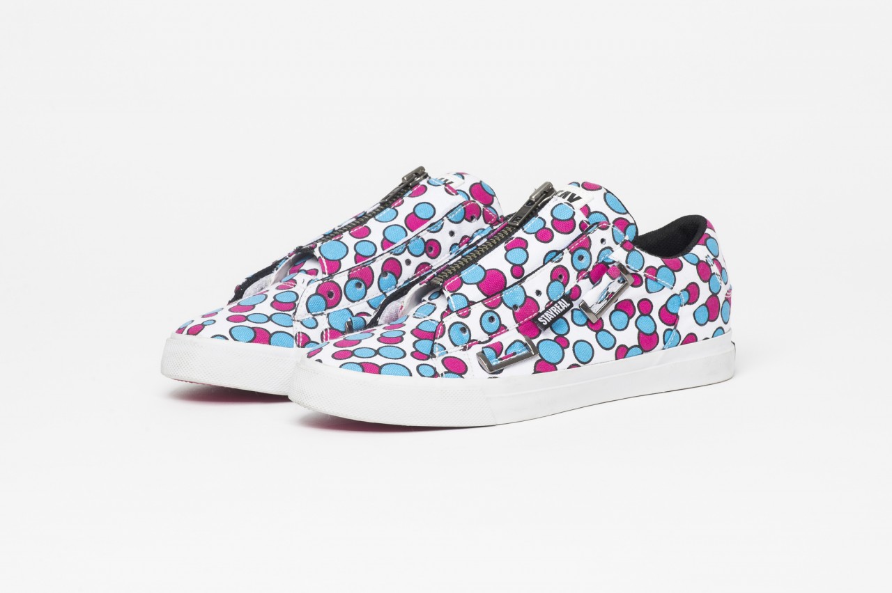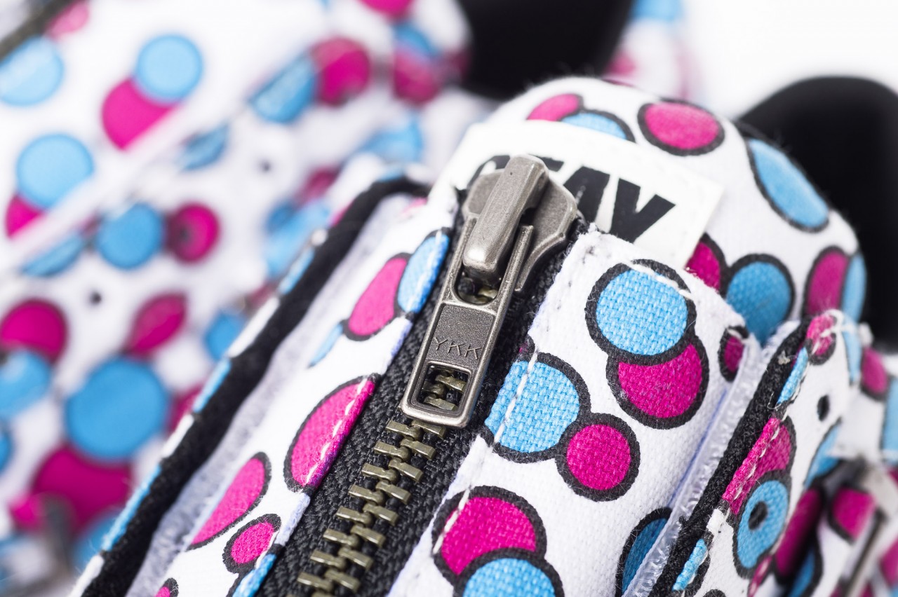 STAYREAL 經典的 ALL IN ONE 設計,除了原本的鞋帶外,更加入活動式綁帶及拉鍊,創造出三種不同鞋身樣貌,將雙色的波點不規則重疊,創造出更豐富多變的視覺感;另一款則是佈滿 STAYREAL 的英文字母,展現品牌與藝術家交彙充滿活力的精神。