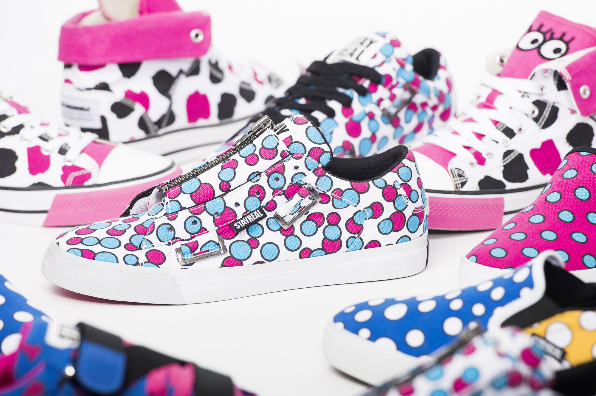 以充分創意與活力帶出台灣流行品牌新氣象的 STAYREAL,繼 2011 年於 STAYREAL CAFE 與知名流行藝術家 Jun Watanabe 渡邊順合作流行藝術展,睽違多年再推出全新聯名企劃。身為日本最大潮流購物網站『ZOZOTOWN』的設計總監,同時也經常為多品牌擔綱設計的 Jun Watanabe,擅長於產品設計、廣告形象、插畫塗鴉與公仔雕塑,Watanabe 創作的最大特色是大膽的運用撞色與波玉圓點創造出繽紛且帶有活力的色彩氛圍,也因這樣的調性與 STAYREAL 一拍即合,本次的聯乘以 Watanabe 獨到的用色手法,揮灑出極富創意的視覺效果,並輔以 STAYREAL 經典的 ALL IN ONE 百變鞋款,成就相當別出心裁的獨特鞋履。