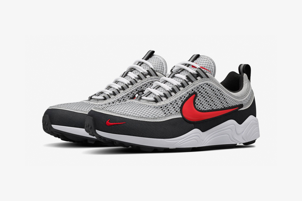 NIKE AIR ZOOM SPIRIDON 鞋款自 1997 年誕生,2016 年夏天 NIKE AIR ZOOM SPIRIDON ’16 以 OG 配色與白銀配色兩款重出江湖。Spiridon 命名靈感取自于 1896 年,第一屆奧林匹克馬拉松項目金牌得主希臘跑者 “Spyridon” Louis 的名字。鞋面以透氣的網布材質為基底,並採用與 Air Max 95 相同的尼龍鞋帶環設計。大底除以全腳掌 Air Zoom 氣墊呈現,並加上了近年研發的 Phylon 中底與 Duralon 外底。2016 的復刻可說是保留了原汁原味外,在不破壞原設計的基礎大幅提升著用的舒適度。NIKE AIR ZOOM SPIRIDON ’16 將在 7 月 14 日起於 JUICE Taipei 限量販售。