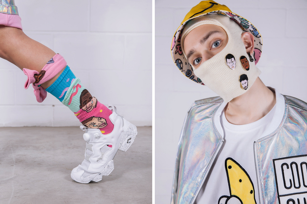 可能有些怪誕,可能色彩有些超乎東方人平常著的粉彩與鮮豔,在作品中你可以看見他們將 Johnny Deep、Kim Kardashian、DRAKE,甚至是喬丹的插畫肖像放置成為一件衣服、別針上的一個圖樣,它們瞄準的是擁有同樣喜好的族群。這是一個來自巴塞羅那的服飾品牌 COOLSHIT,出自藝術單位 Hungry Castle 之手,以網路為靈感、現代藝術為風格、亮色為顏料,創造出富有叛逆精神的作品,法國代表性買手店 Colette 也有販售它們的作品。之所以會命名為 COOLSHIT 是因為 Hungry Castle 創作時,除了朝著 COOL 的方向發展,有時也反轉以 SHIT 為題。藝術家薩爾瓦多·達利帶給他們很大的靈感啟發,這或許也是一部份在創意上、或是在精神上它們同在探索潛意識裡的矛盾吧。COOLSHIT 2017 系列商品用粉、黃兩色為主視覺,並穿插數位圖案,包含上衣 、長褲、長襪以及別針飾品。