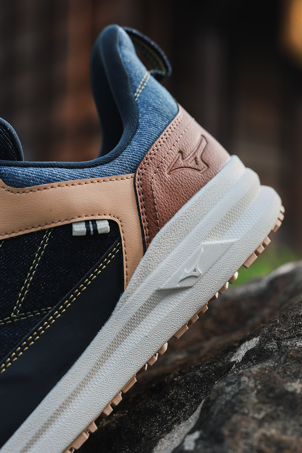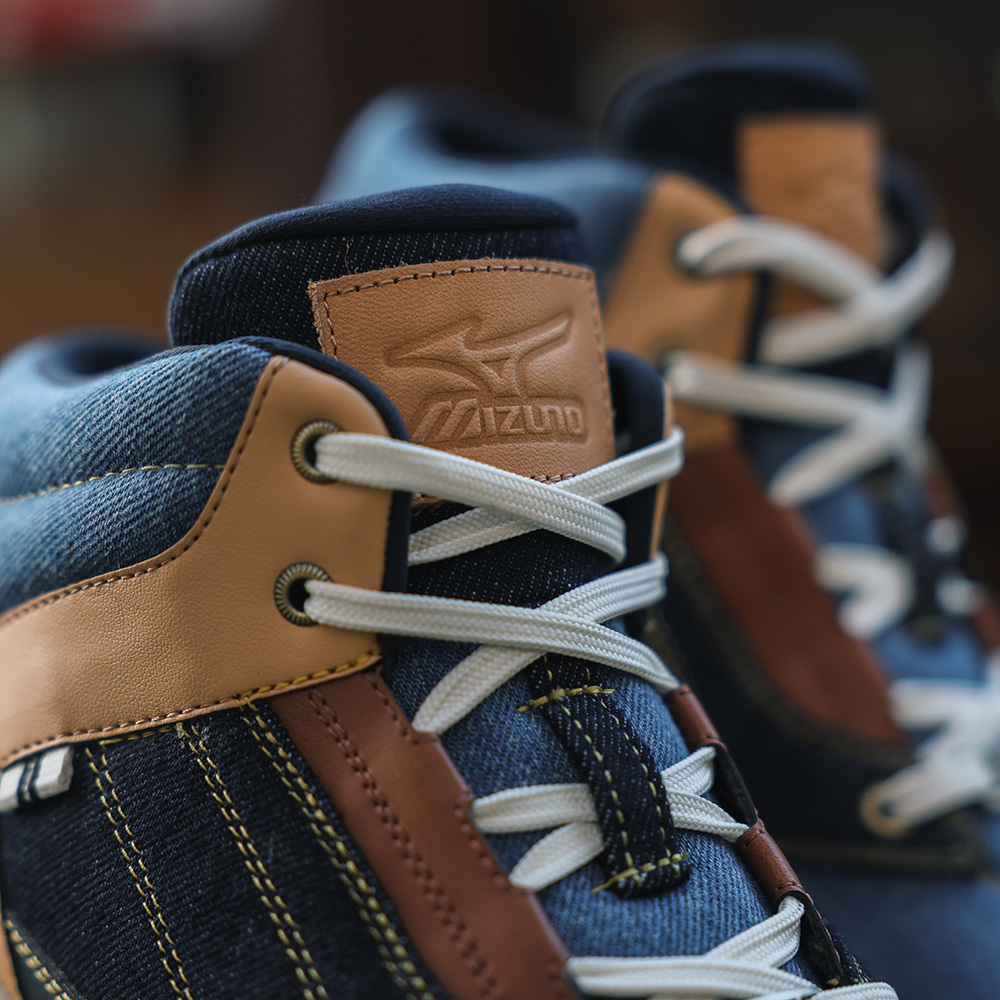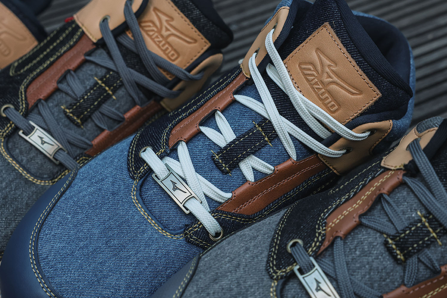 PRIME FIT LSII 11 DENIM 是 MIZUNO 第三度採用丹寧布打造的限定版本,用料細節延續前兩彈的設定,展現安全防護與工裝風格交織的職人美學。全鞋採用大面積日本岡山丹寧面料製成,布料紮實細膩,長時間穿著仍能維持硬挺度。岡山縣不僅是日本丹寧重鎮,其產出的布料在全球也享有高知名度,這次的限定版本在布料選用上維持高規格,紋理緊密且色澤深邃,觸感粗中帶柔,保留了丹寧布最具代表性的質感魅力。