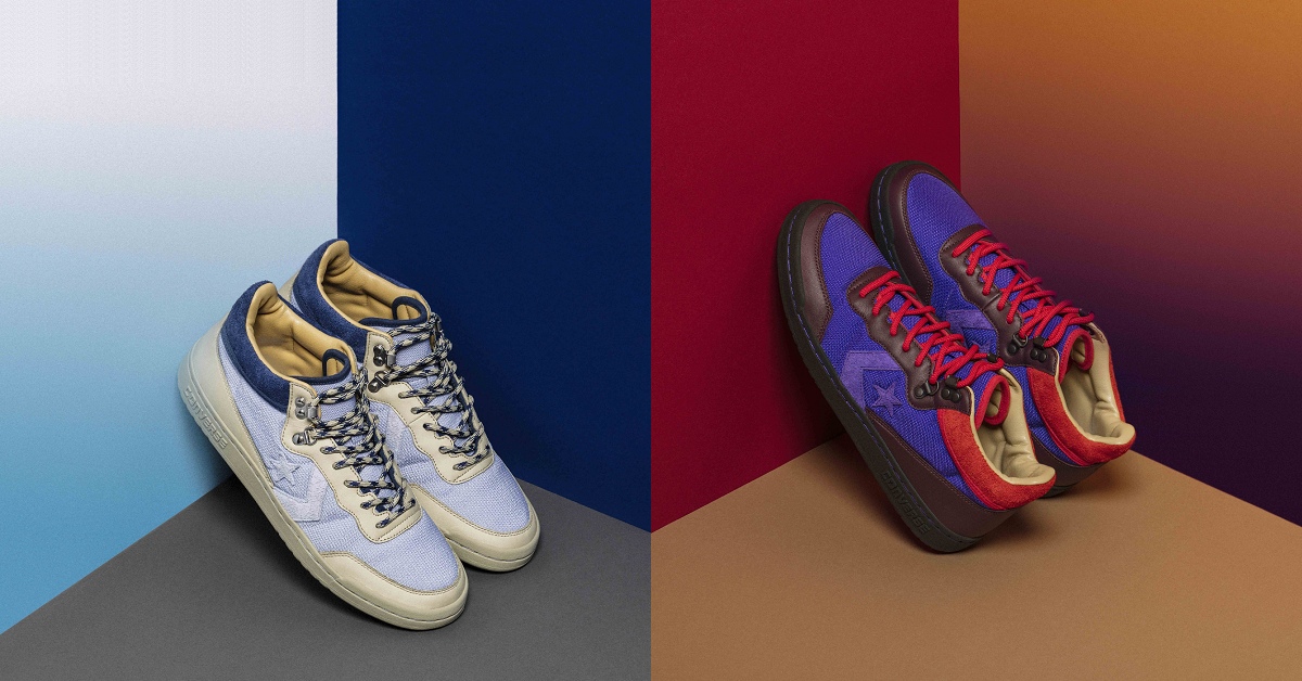 CLOT 與 Converse 的合作從 2012 年開始,可說是嘗試過許許多多的鞋型,經典高、低筒的 Chuck Taylor All Star 已不在話下,Jack Purcell High、Thunderbolt 84、Pro Leather 到近期受到高注目的 One Star 之作皆為不同嘗試,甚至早期都是與 Converse First String 高端支線合作,如今雙方再度攜手,挑選今年重出鞋界的 Fastbreak 83 Mid,對鞋型歷史有興趣的可洽友站 Kenlu 的報導,這次合作延續 CLOT 2017 秋冬系列 ’80 Degrees North’ 主題,結合 Edison Chen 和 Kevin Poon 兩位創辦人共同喜愛的 80 年代運動風格,用色大膽,材質選配又呼應北極嚴峻環境,採用防水皮革、重磅織物作為鞋面,穿插麂皮構成的 Star Chevron 標誌,而 D 環、快拆鞋帶孔和圓狀鞋帶更洋溢登山靴的戶外感。