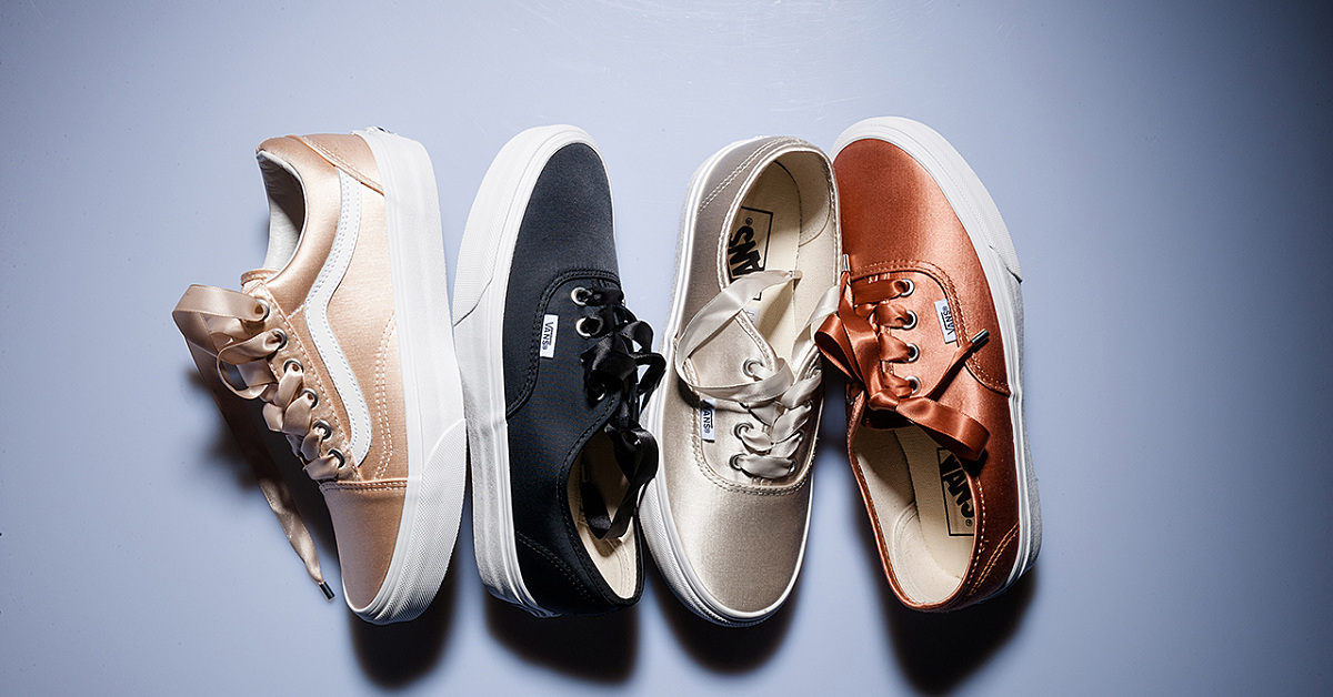 Vans Satin Lux 系列以高光澤緞面材質為主體,將奢華感帶入 Authentic、Old Skool 鞋型中,以銀、玫瑰金、淺粉紅及金屬灰四色為主調,搭上寬版緞面之鞋帶,營造女孩們的可愛、典雅等氣質,這讓筆者想起,去年 Opening Ceremony 與 Vans 合作也以緞面為題,不過當時強調使用滑板後的磨損,而在刺繡橫須賀系列同樣有著緞面基底,卻是東洋味的另一種呈現,一個材質能延伸出這麼多變化,實則顛覆許多人想像。