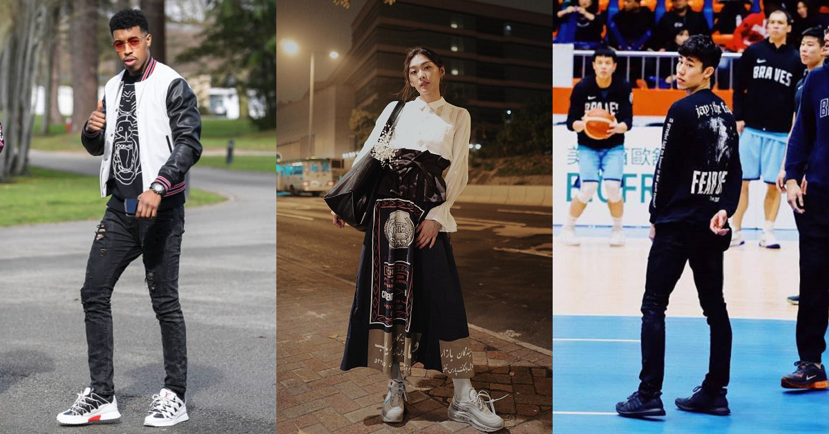 在尋找是否還有其他足球員也對穿搭有興趣時,發現比利時這位前鋒 Michy Batshuayi,用黑白相兼視覺營造身型比例,內搭的格紋襯衫賦予重點也模糊了腰線,還有寬緊錯落的比例配上厚底 Balenciaga Triple S 都格外有趣,喔對了,在下一幕 Batshuayi 就被球隊吉祥物從後面嚇了一下。