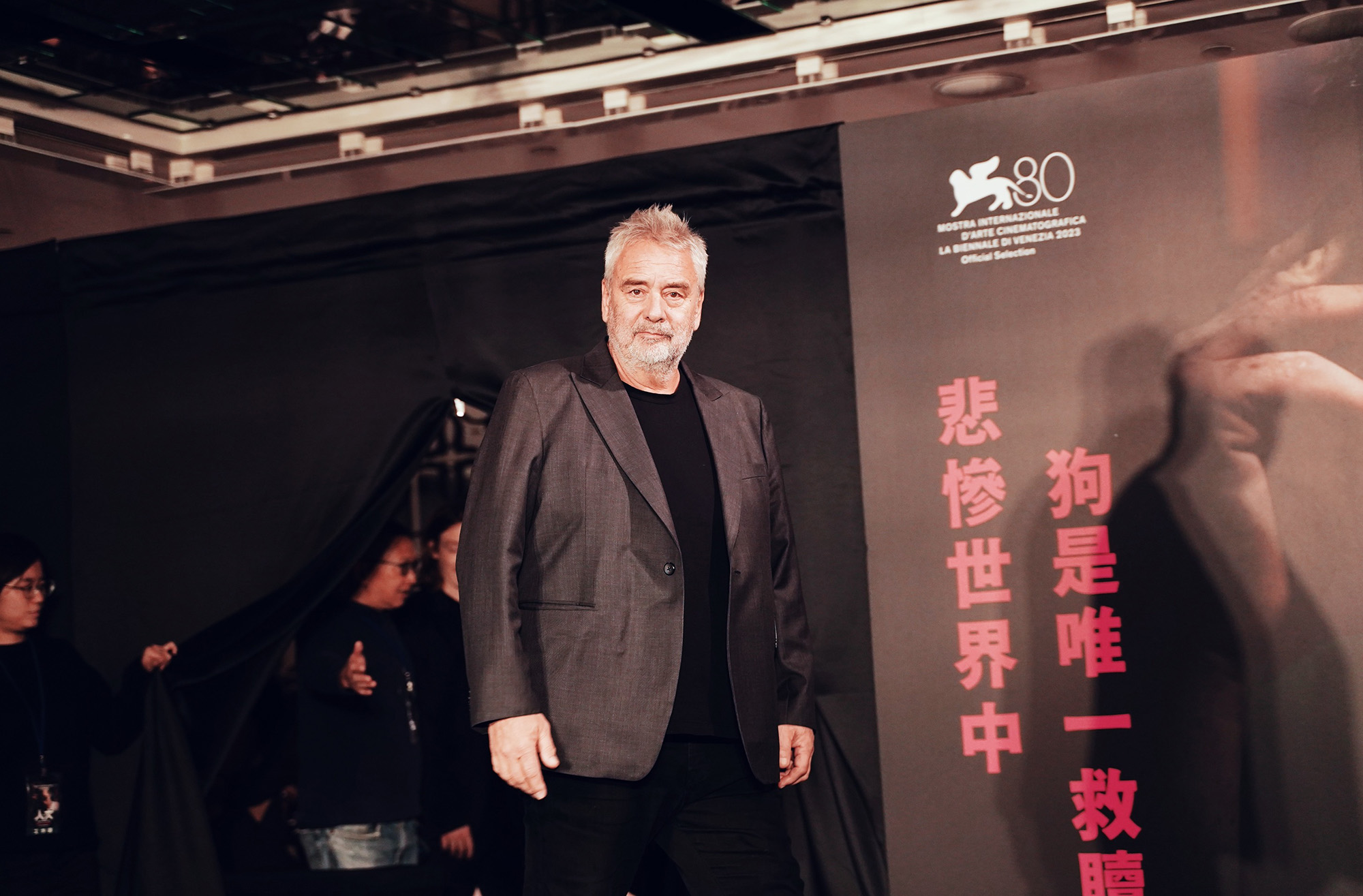 國際大導盧貝松帶著最新話題鉅作《人犬》抵台宣傳,特別偕同製片維吉妮貝松和首次來台的坎城影帝卡賴伯蘭李瓊斯,接連參加記者會與首映會和台灣觀眾見面。《人犬》劇本靈感啟發自盧貝松在報紙上讀到的虐童新聞,讓他相當震驚,不禁去想像受虐的兒子長大以後會變成怎樣的人,因此發想出這部關於傷痛的電影《人犬》,也希望觀眾看完後可以從傷痛中獲得療癒。《人犬》中一共集結了上百隻不同品種的狗參與演出,導演盧貝松表示:「跟狗拍戲每天都是場大混戰!」有時候甚至拍攝三天只為拍到一個鏡頭,相當用心良苦。此外,《人犬》劇組像對待人類演員一樣對待狗狗群演,盧貝松在開拍前看過七百多張的狗狗照,最後精心挑選出不同品種的組合,四個月內組織好動物群演的團隊。有些狗在拍攝《人犬》前來自收容所,身上都有許多傷痕,拍片過程受到良好的照顧,殺青後狀態都變很好,劇組工作人員也紛紛收養牠們帶回家,可說是拯救了不少流浪犬。盧貝松進一步闡述:「我在寫《人犬》劇本時一直在思考人生而為人是為了什麼存在?我認為人類不是由任何外在標籤所定義,而是奠基於我們選擇做出的行為。」