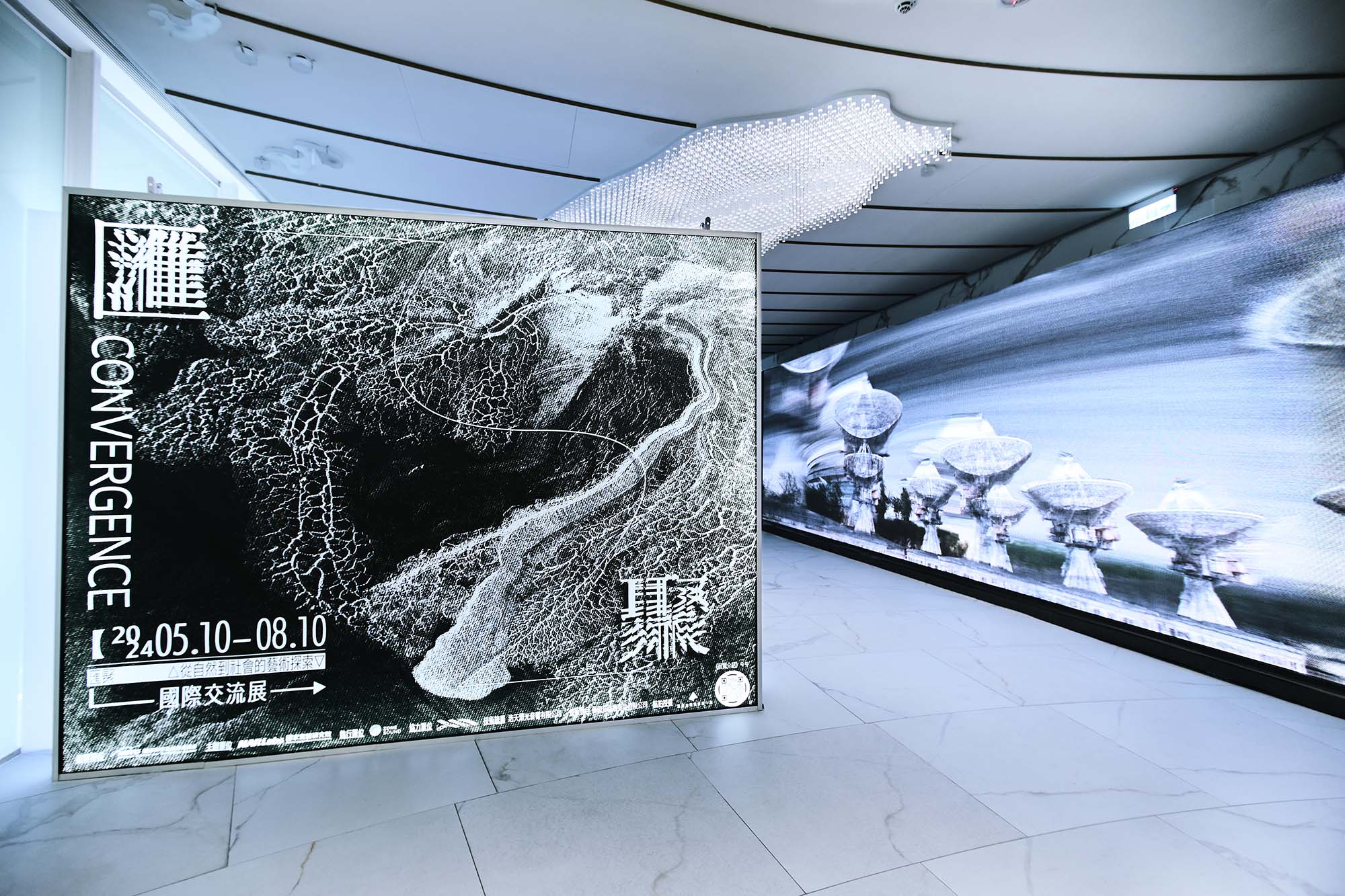 由國家科學及技術委員會、國家實驗研究院主辦的《匯聚:從自然到社會的藝術探索》國際交流展,邀請到融聲創意團隊來打造創新實驗的展覽,將「藝術x科學實驗室」搬進科技大樓一樓大廳,在大家日常生活所關心的各種議題中,從藝術的角度來理解科學,透過不同的「眼睛」來一探究竟。