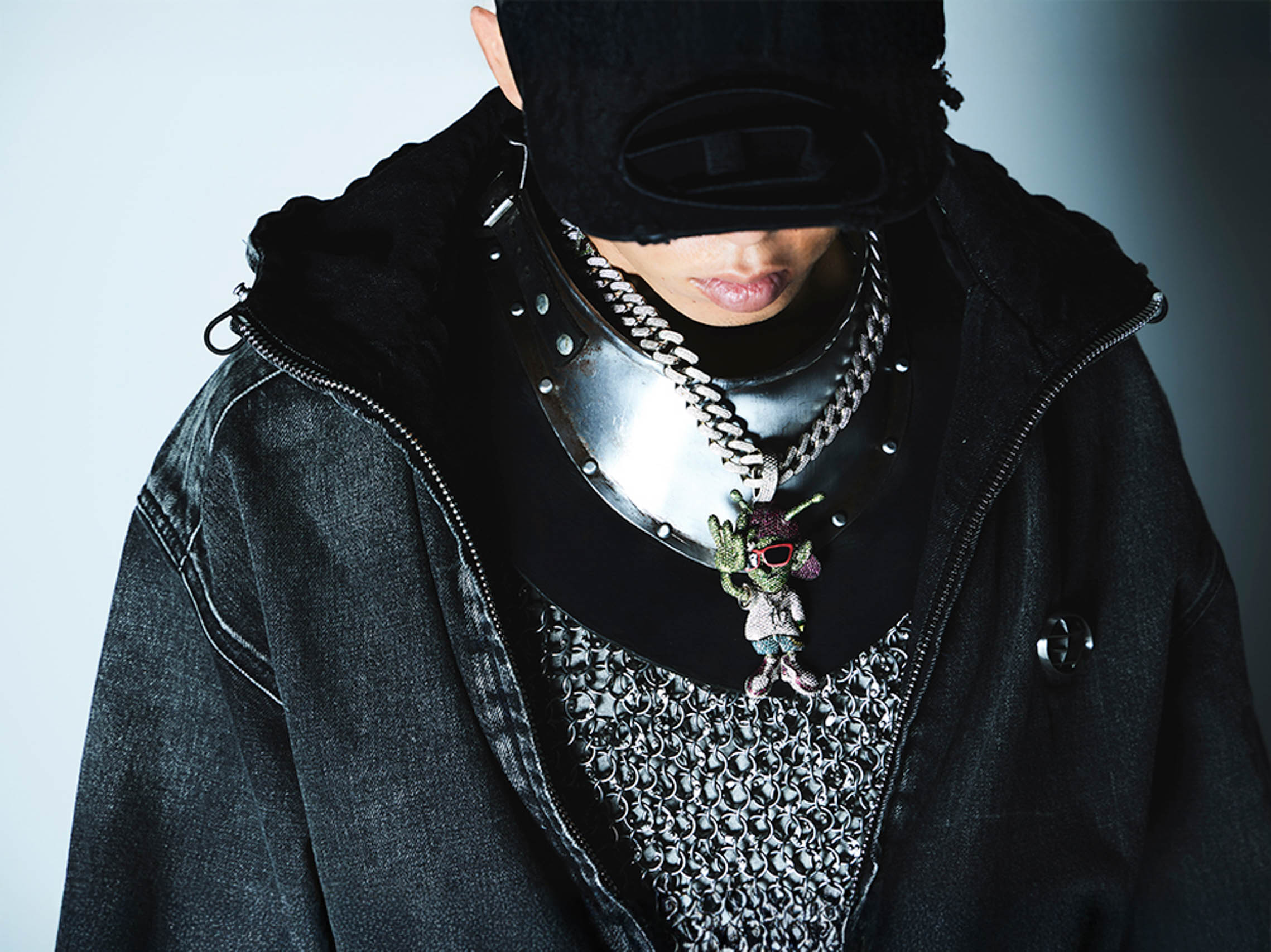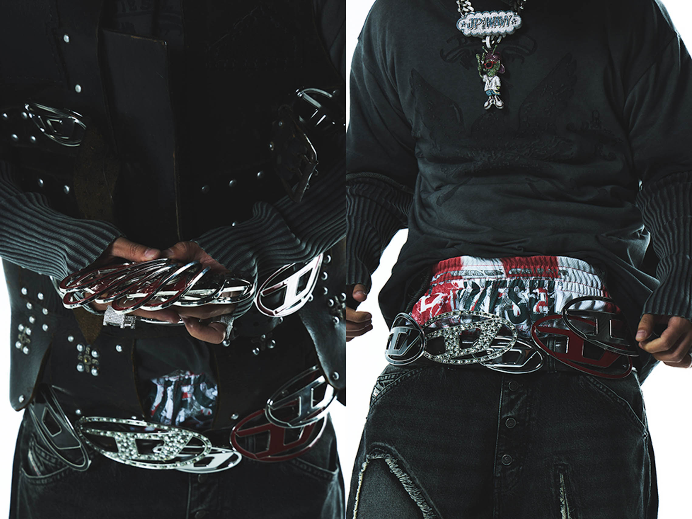 雖然系列總共只有八件單品,但處處充滿雙方「解構 × 重組」的實驗,又在細節融入水鑽 & 金屬鉚釘,這種原本屬於搖滾或地下機車幫的元素,並在粗獷基底上添加水鑽華麗元素,以及近年來 DIESEL 的招牌做舊工藝,放上標誌一半 Diesel、一半 Thug Club 的聯名 LOGO,象徵著自由、不從眾與跨界混血。