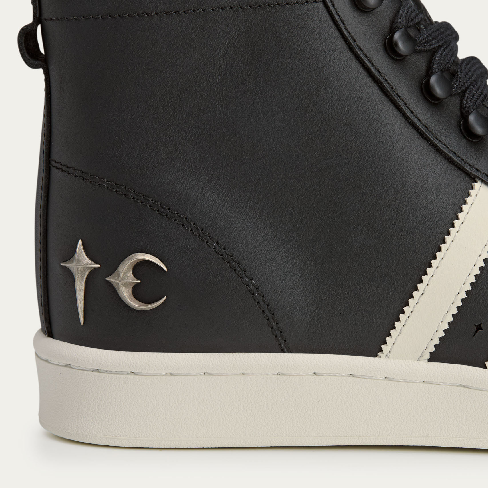 UPERSTAR BOOT LUXE TC:把經典 Superstar 的那顆貝殼頭(shell toe),變得更具立體感、並把包覆性更強,再搭配使用高級皮革打造的全鞋身與 Thug Club 金屬徽飾裝飾點綴,以及在不同部位縫線密度更改、覆層切割設計都更講究,讓整雙鞋在視覺上呈現「護甲」感。