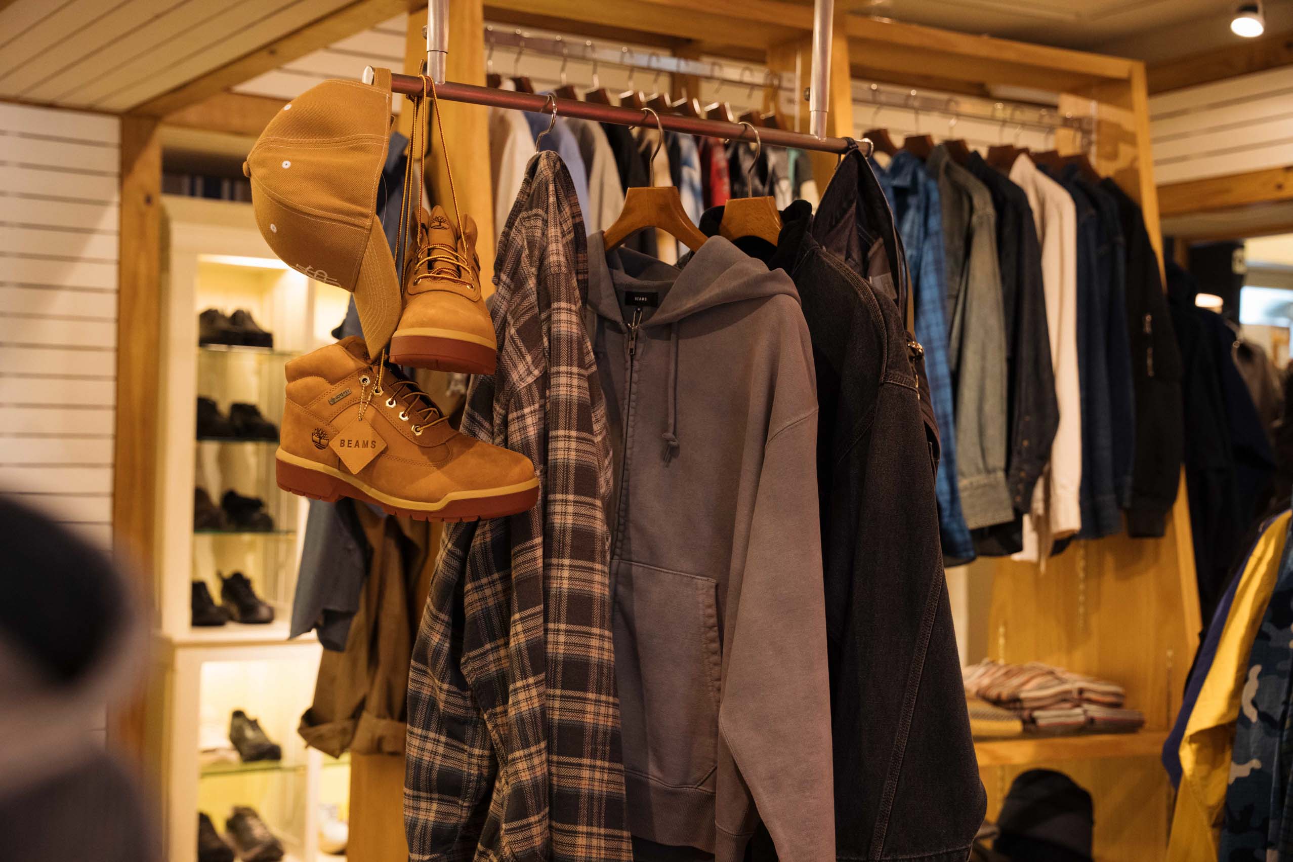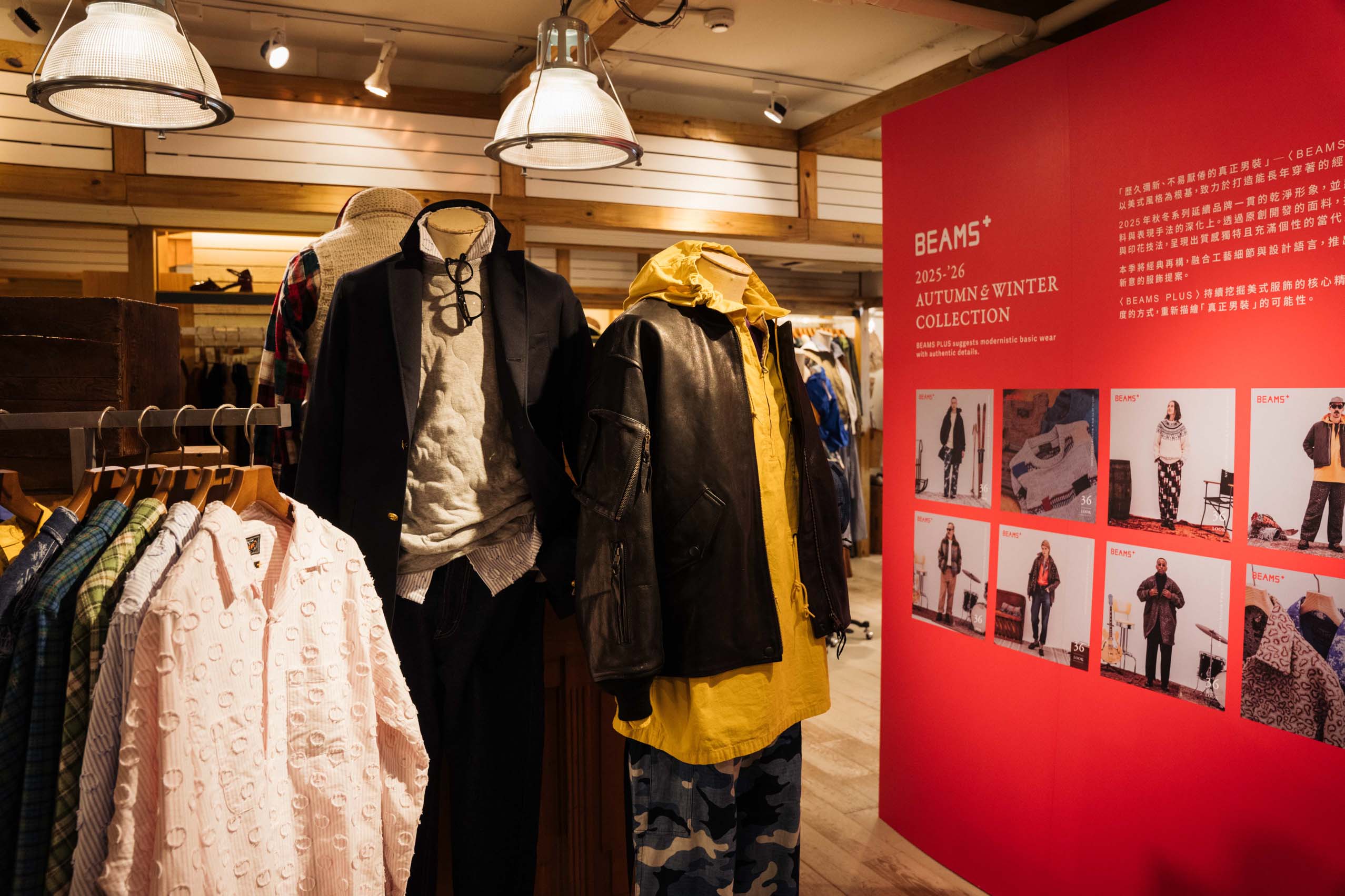 BEAMS 此次在台北店完整公開旗下四大服裝支線 BEAMS、BEAMS PLUS、Ray BEAMS、BEAMS BOY,每一條線都有鮮明的設計定位和風格,〈BEAMS〉主線:品牌核心主題為 “BASIC & EXCITING”,靈感取自 1990 至 2000 年代日本街頭文化的黃金時期,設計團隊透過導入帶未來感的機能性素材,將經典元素重新組合,打造出屬於當代的東京街頭風格,〈BEAMS PLUS〉:男裝副線,以“經得起歲月考驗、歷久彌新的正統男裝”為理念核心,把 1950 年代美國戶外、軍裝和常春藤學院等制服文化融入現代服飾,營造出雅痞又穩重的紳士休閒風,本季特別著重各種服裝加工細節的講究。
