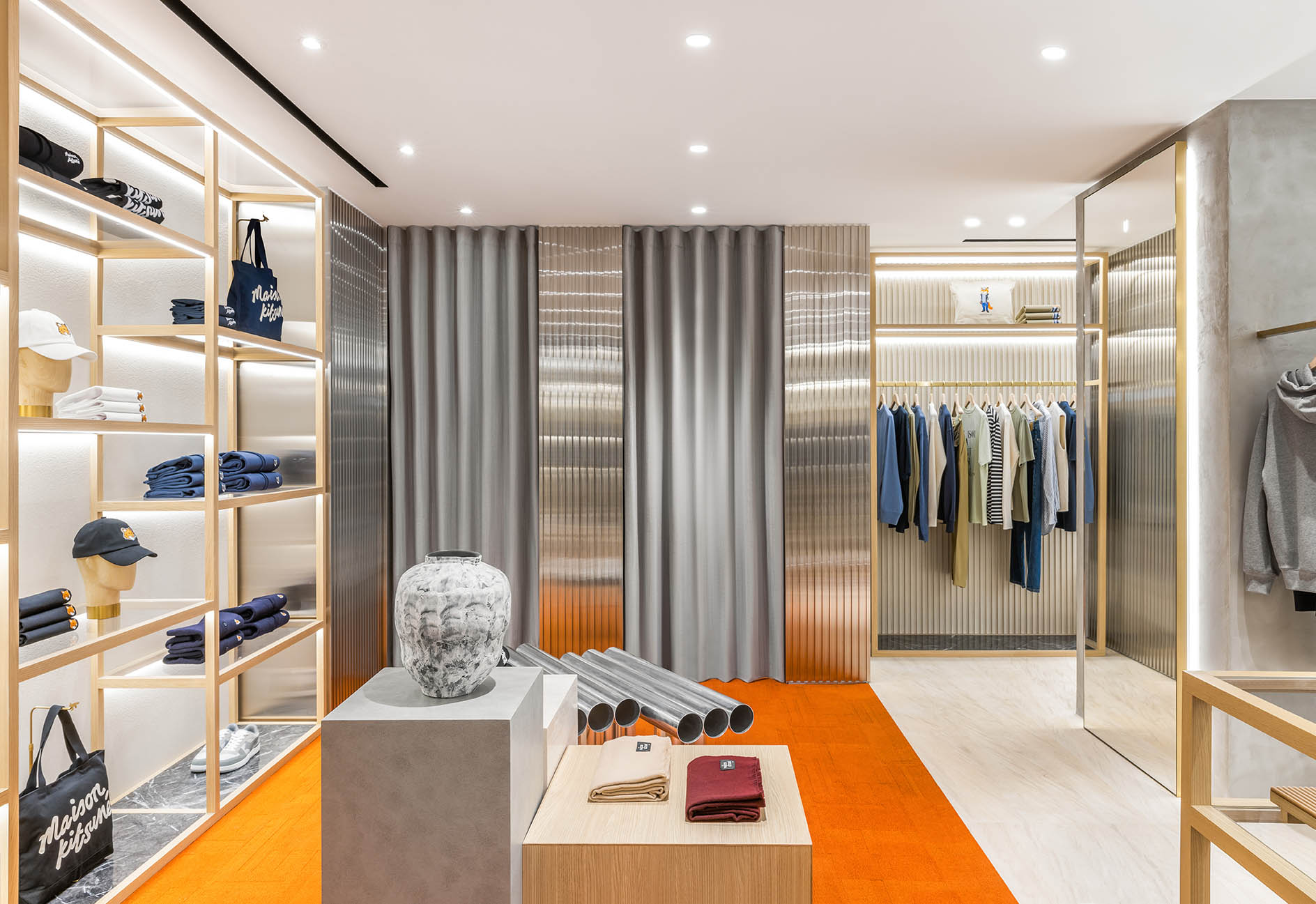 忠孝 SOGO 全新櫃位以品牌標誌性色調搭配木質紋理,展現簡約、溫潤與現代節奏。整體空間兼具時尚與生活感,呼應 Maison Kitsuné 所主張的「Art de Vivre」——讓時尚成為日常的自然語言。