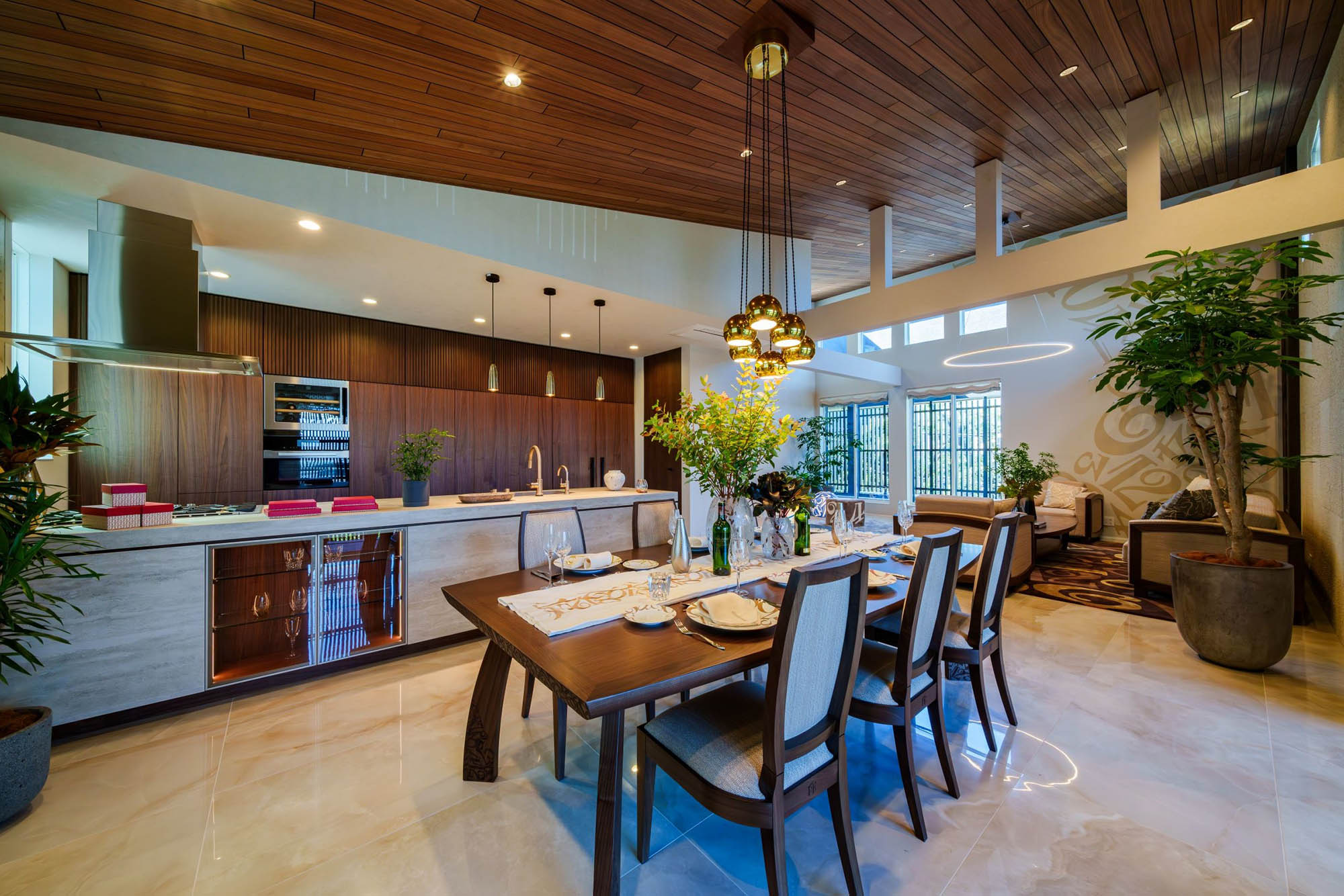 這棟位於目黑區八雲市兩條街道交界處的豪宅,由總部位於東京和名古屋的豪華獨棟住宅開發商 Moroto House,並且由Franck Muller的監督下設計建造,目標是要將製錶工藝的精準與住宅建築的完美融合」,從設計、結構到材料和照明,都融合著 FRANCK MULLER 的特色。室內空間隨處可見標誌性的拜占庭數字,為日常生活帶來意想不到的驚喜和興奮,就像時鐘的指針敲出意想不到的節奏一樣。