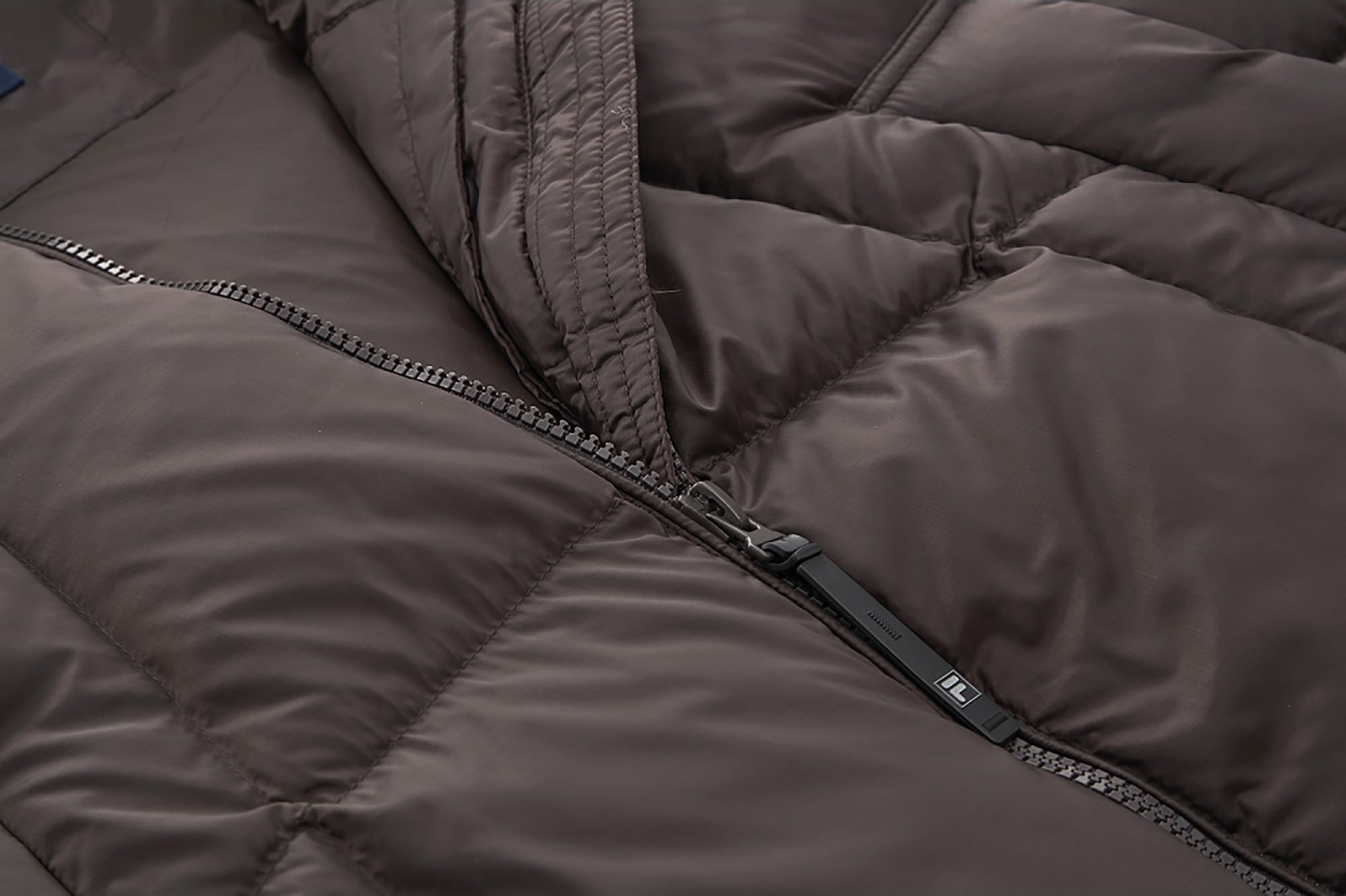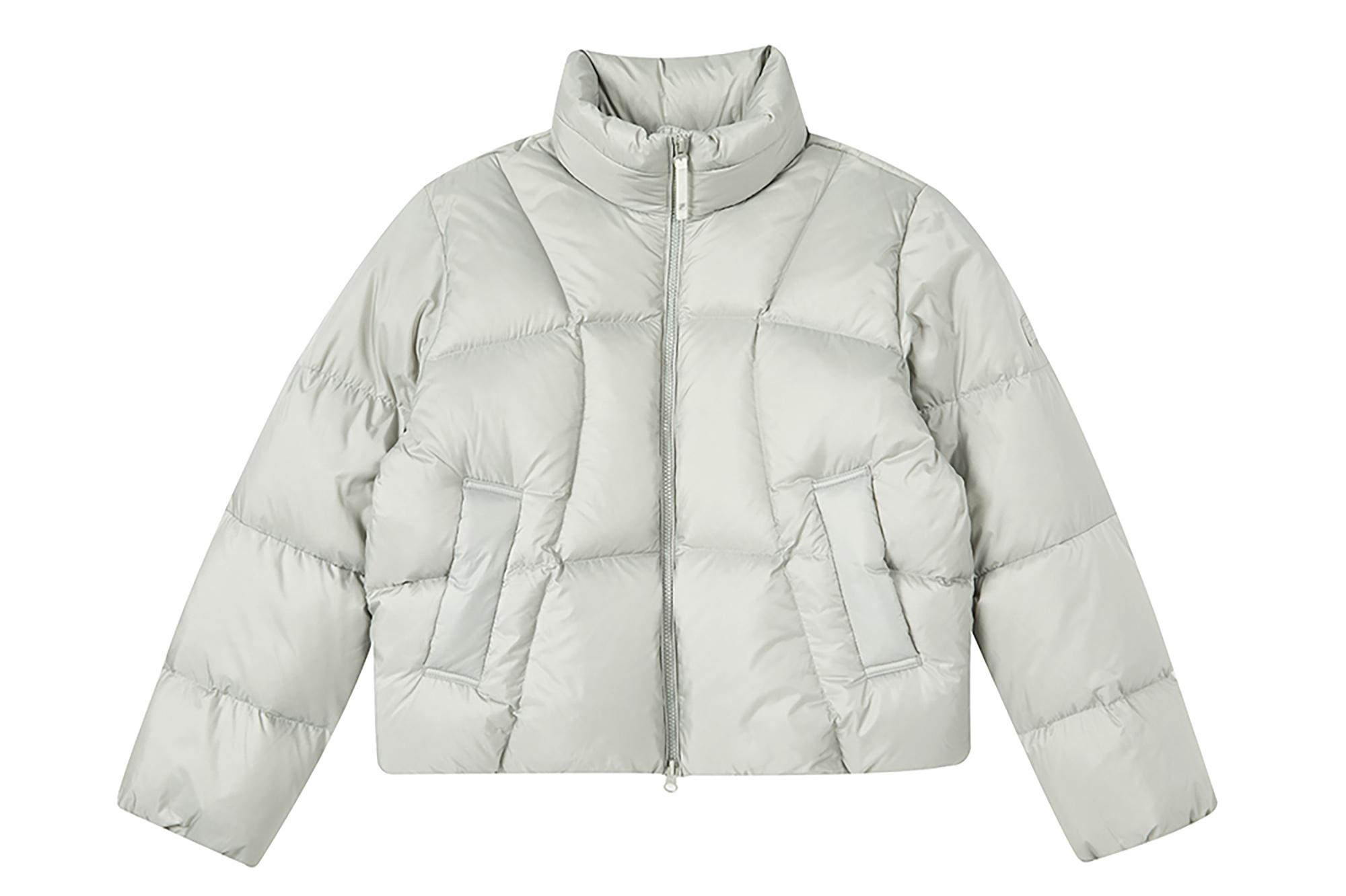 FLOW DOWN 使用 PERTEX® QUANTUM 布料,霧面、不反光,穿起來像一件高質感外套,而不是傳統蓬鬆羽絨。韓韶禧在形象照裡選擇用極簡的同色調內搭,把焦點留在外套的霧面質地上,強調今年冬天的「輕暖」美學。
