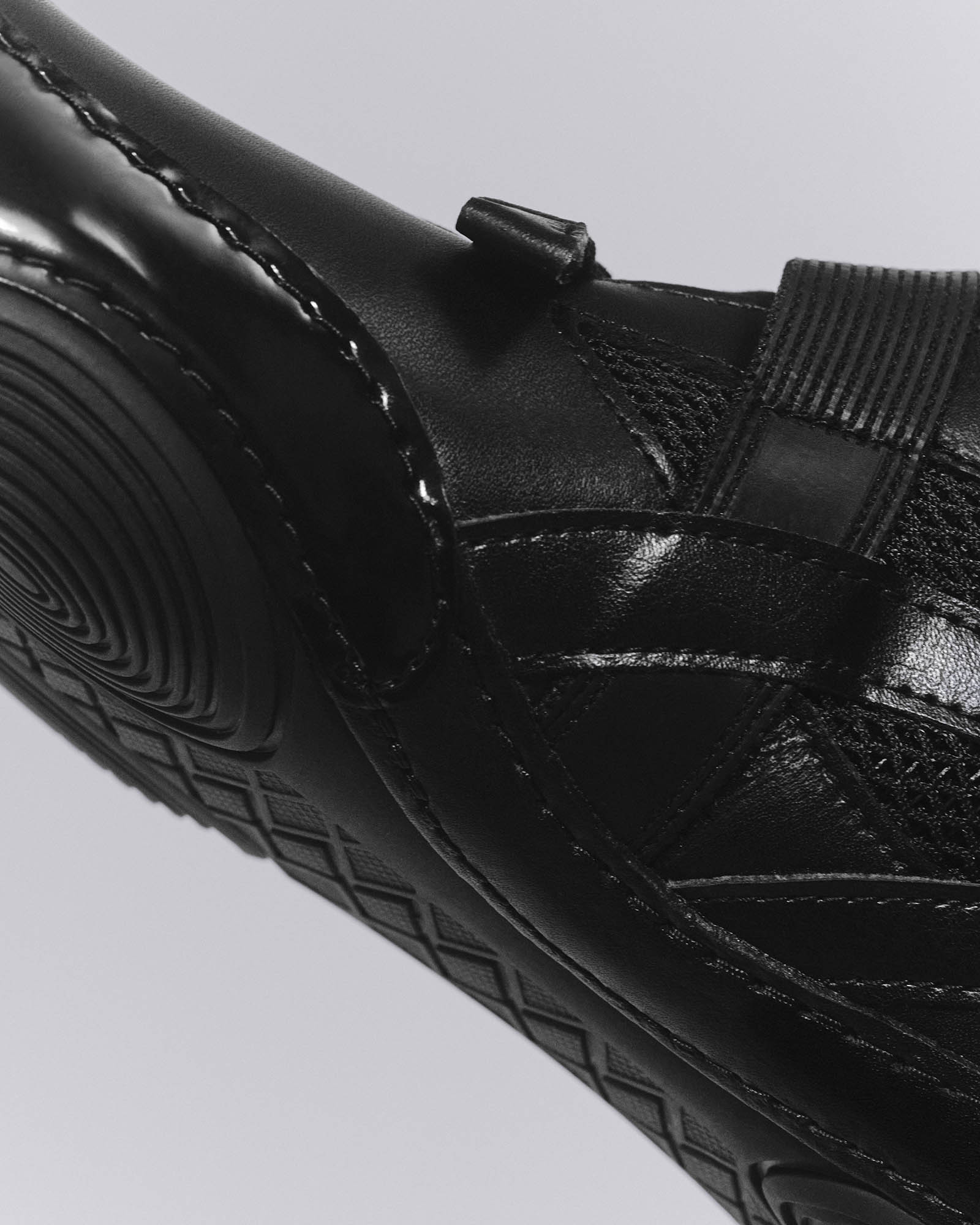 整雙鞋融合了 asics stripes(條紋),Miyake 設計工作室代表接受 ⟪FOOTWEAR NEWS⟫ 採訪時表示,「asics stripes 不只是視覺效果,而是源於功能性,1966 年首次應用於『Limber Leather』鞋款以來,主要是在保護跟腱並增強上肢力量。」