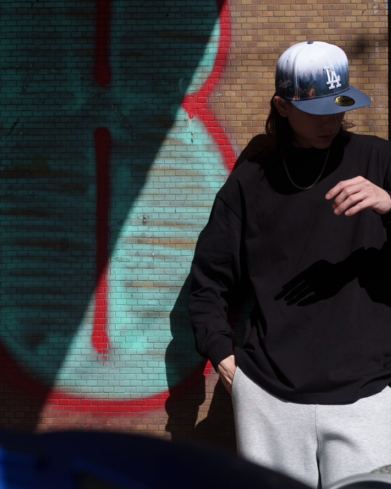 這頂名為 FOREST 的 5950,將樹海圖案融入設計,再加上球隊標誌。因為帽子本身就夠搶眼,搭配就盡量簡單。既然是「運動」調性,棉質運動衫與運動褲就是最好組合,以創立年份1920為主題,版型寬鬆的上衣,搭配實際很挺的棉褲,雖然是運動裝扮卻不會邋遢。
