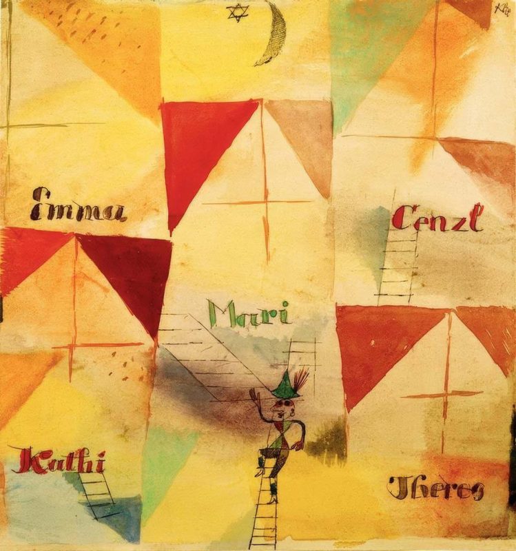 保羅· 克利在 1919 年的創作,特色是幾何線條與圖像,畫中描繪一個爬梯子的人,周圍環繞五位女性的名字,這幅畫被認為是藝術家隱晦的自畫像。