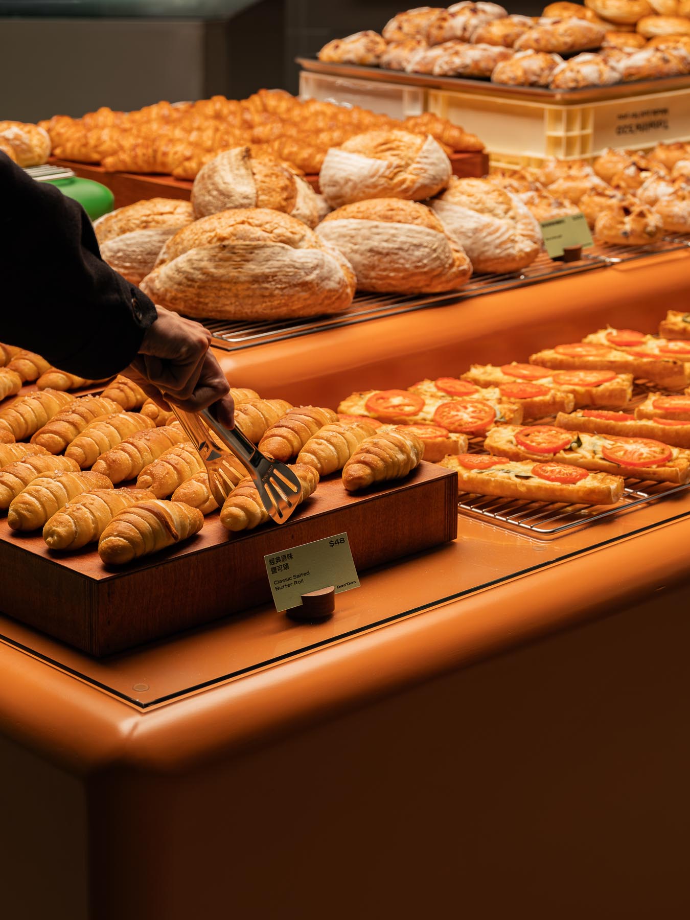 以自養酵母、慢發酵工法與多元麵種,除了最受歡迎的可頌之外,DUM DUM 的歐式麵包中融入地瓜、鳳梨、枸杞、桑椹、黑糖與多穀物等台灣土地記憶