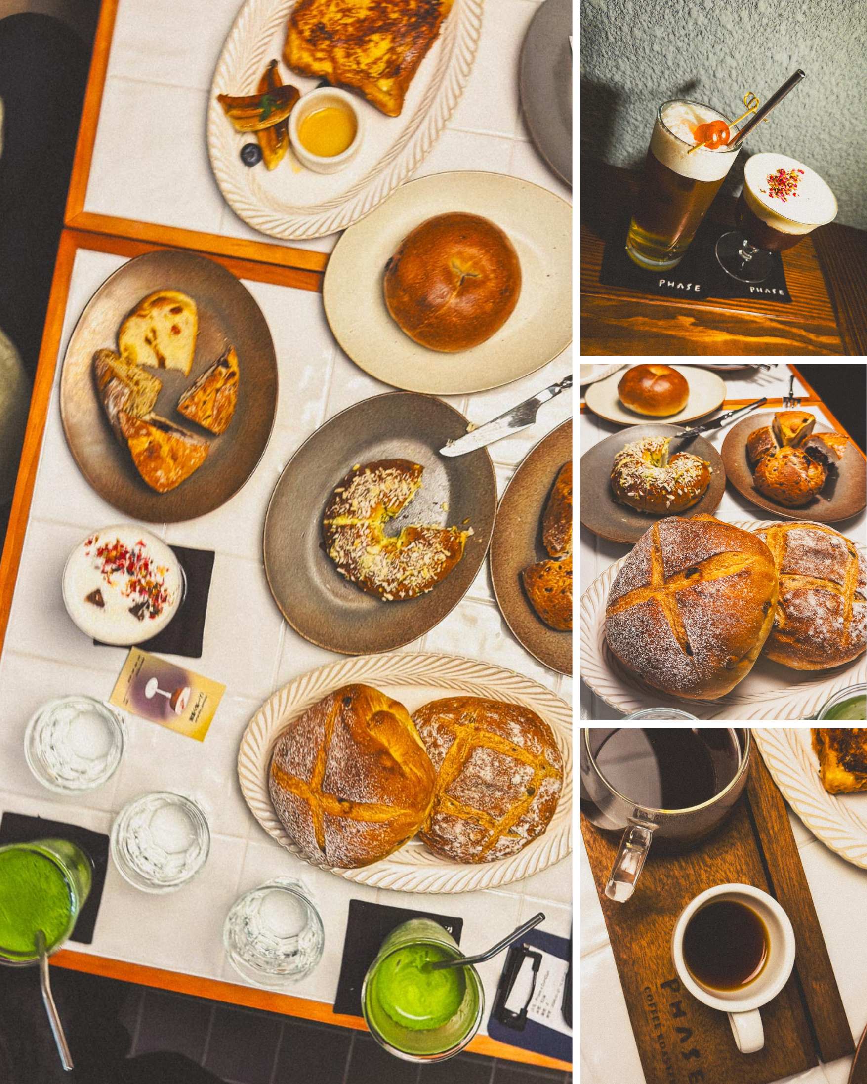 而在這個空間的另一端,與那充滿感性的麵包烤箱呼應的,是 Phase Coffee Roasters 正從義式咖啡機裡萃取出深色的濃縮風味。