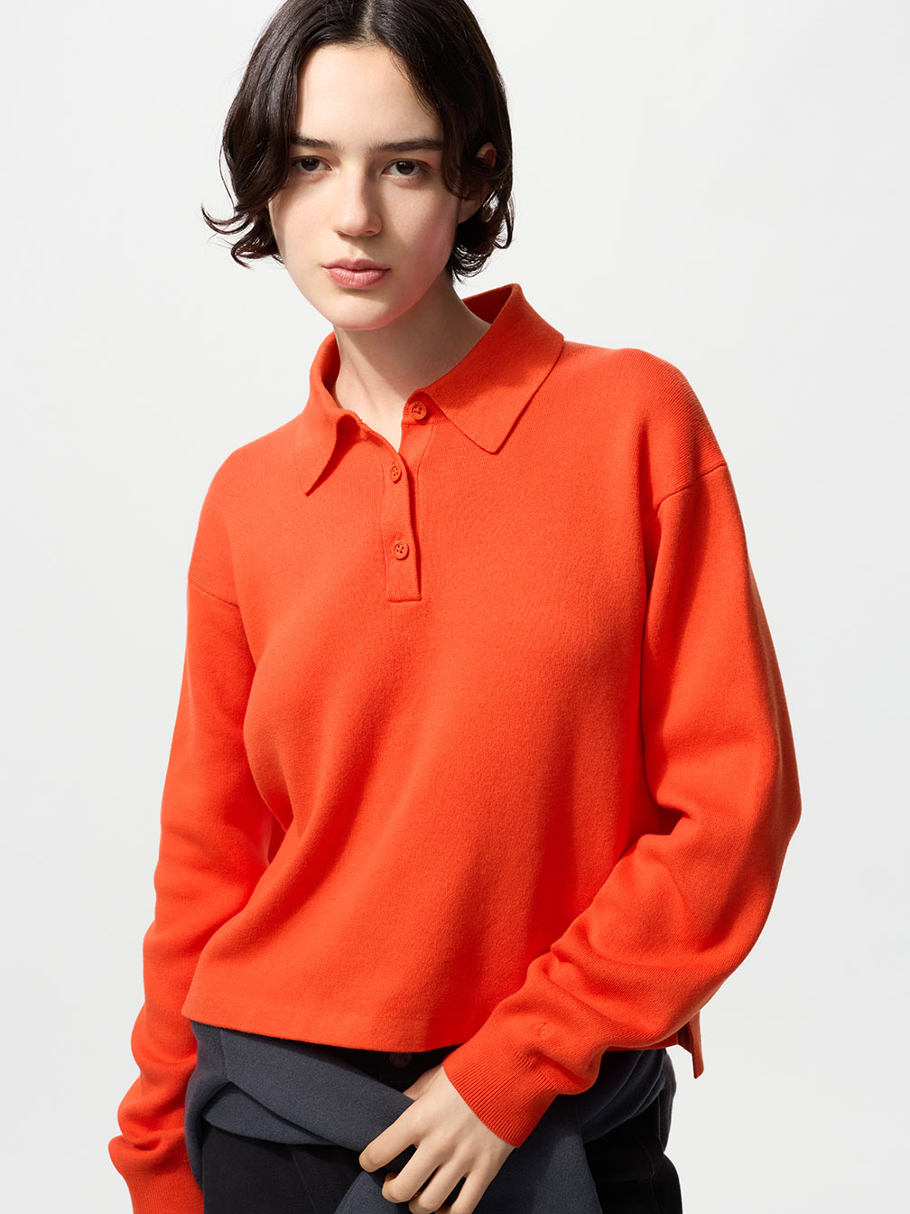 上身單品則以「輕薄但有存在感」為重點。像是 UNIQLO:C 的柔滑棉圓領針織衫、柔滑棉 POLO 針織衫,材質親膚、不悶熱,現在可單穿或內搭,春天時則是單穿就能完成造型的基礎款。羅紋亨利領 T 恤這類設計,現在可作為內搭,春天單穿也很ok。