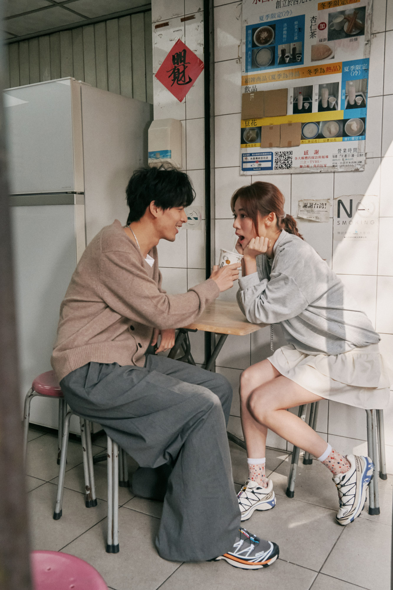 在遊樂場玩得盡興後,最後一站來到充滿生活感的迪化街散散步。先去跟月老打個招呼,祈求感情順利、少點爭吵。接著,非常推薦走到月老廟與永樂市場中間的巷子,找間傳統老店坐下來喝杯熱杏仁茶。在溫暖的香氣中喘口氣,聊聊天、談談心,然後再慢悠悠地繼續接下來的行程。