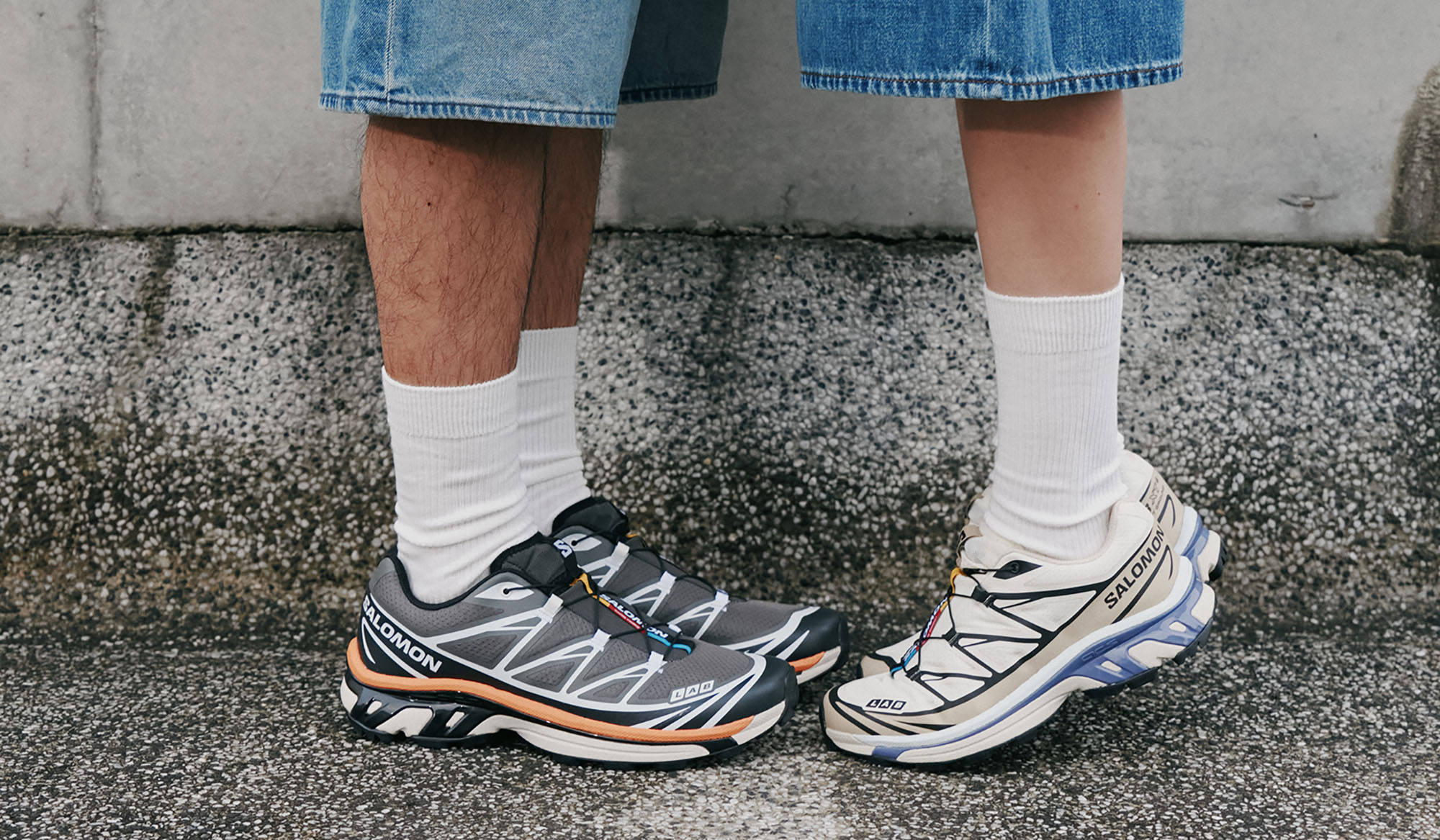 因為 XT-6 強烈的視覺效果,成功從山徑走到了街道,成為潮流穿搭的熱門單品。還有 Salomon 鞋舌上標誌性紅色、黃色與藍色組成的織帶,象徵著熱情、動力,還有品牌起源、法國的山巒、天空與水源,這不正是情人相處最重要的情緒,更是成為彼此默契的連結,無論他和她的穿著風格,腳上永遠是 Salomon XT-6,如同身邊那位不變的另一半。