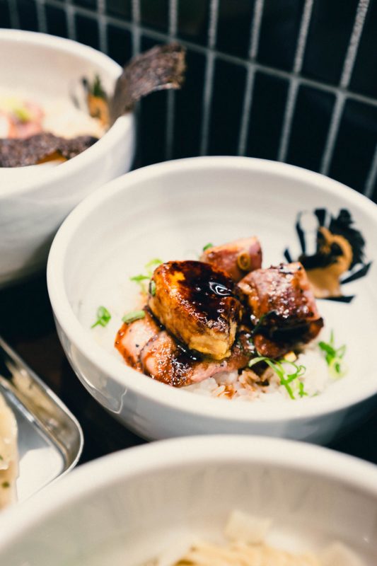 最令我著迷的細節,在於那碗麵上看似配角、實則點睛的魚鬆。選用真鯛腹骨,歷時兩小時蒸煮後,再由職人指尖細心剝取出僅約 15 克的純粹肉質。出餐前的微火炙燒,讓焦香與魚油的鮮甜在湯面上瞬間綻放。這 15 克的重量,與「虎軒製麵」客製開發的靈魂麵體結合,讓這些來自台灣的想法與日本的風味主體呼應,足以填補忙碌間的心理空虛,讓身體裡的感官重新對焦。