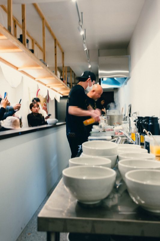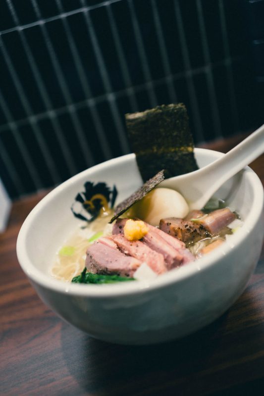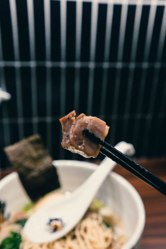 在台北尋找一碗心中想要的拉麵,可以盛大地像場冒險,也可以是撫慰心中「拉麵胃」的一場努力。我在年前試營運期間,在中山巷弄裡尋找那扇門,看著連摩托車都得小心通過的極窄道路,帶著些許懷疑:這屋簷下,如何擠進兩家如此風格鮮明的實力派名店?我問了橋本友則社長「現在想煮出什麼樣的拉麵?」,社長兩眼盯著我說了「我想煮出讓全世界認識的拉麵