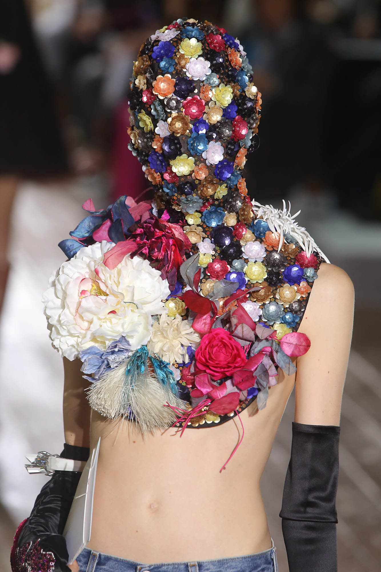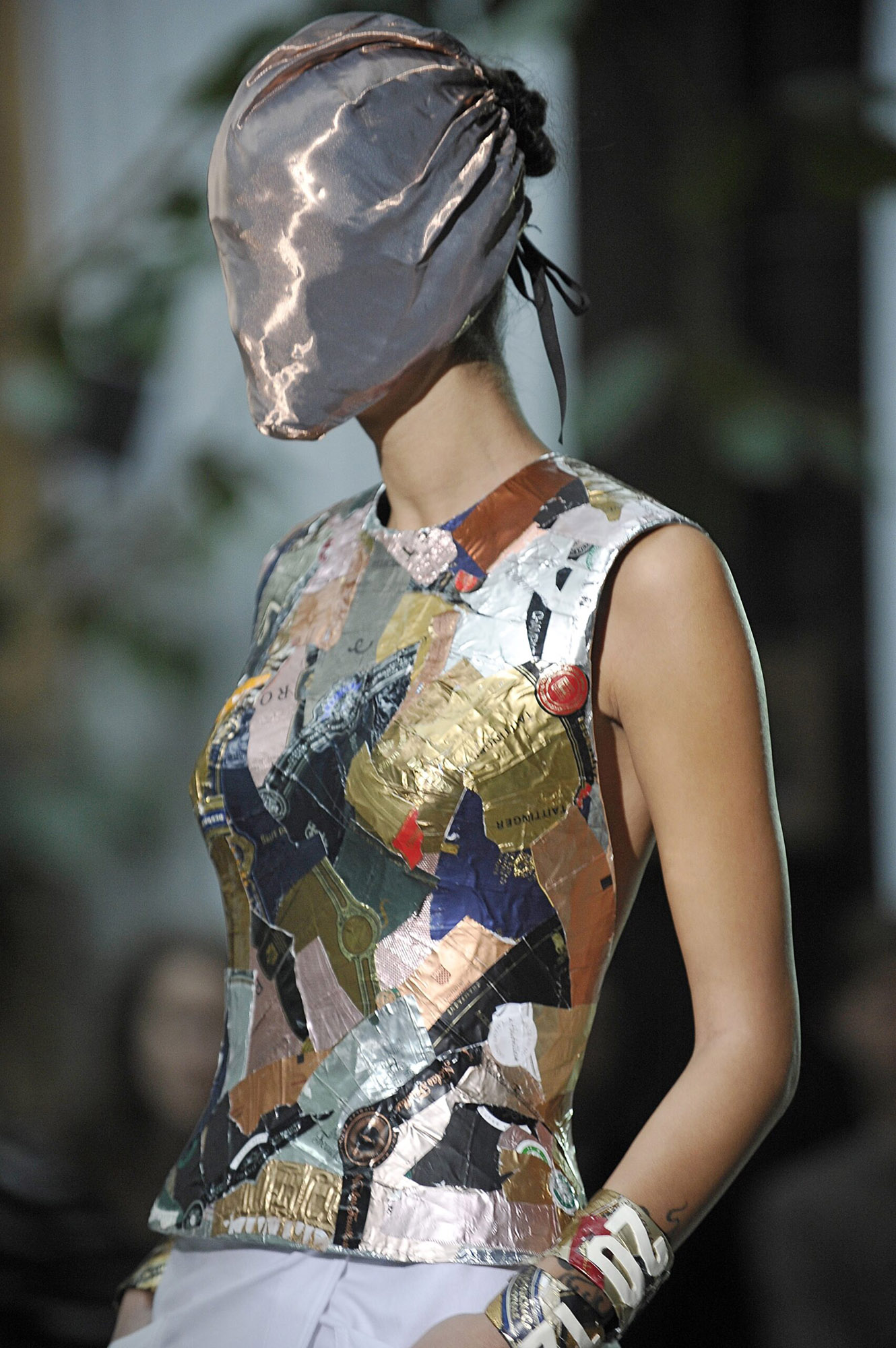 遮去面容是 Martin Margiela 極為有代表性的手法,1989 年,巴黎 Cafe De La Gare 舉行的首場發布會中,伴隨著 ⟨Guess I’m Falling In Love⟩,模特兒的面部被蒙上面紗,這一舉動震驚了當時崇尚名流文化與偶像崇拜的時尚界,1993 年春夏系列中,Margiela 進一步使用了棉質薄紗(Cotton Muslin)面紗。Maison Margiela 的面具並非面具,當面孔、目光、以及那標誌性的明星光環都被剝離之後,焦點自然專注於服裝。