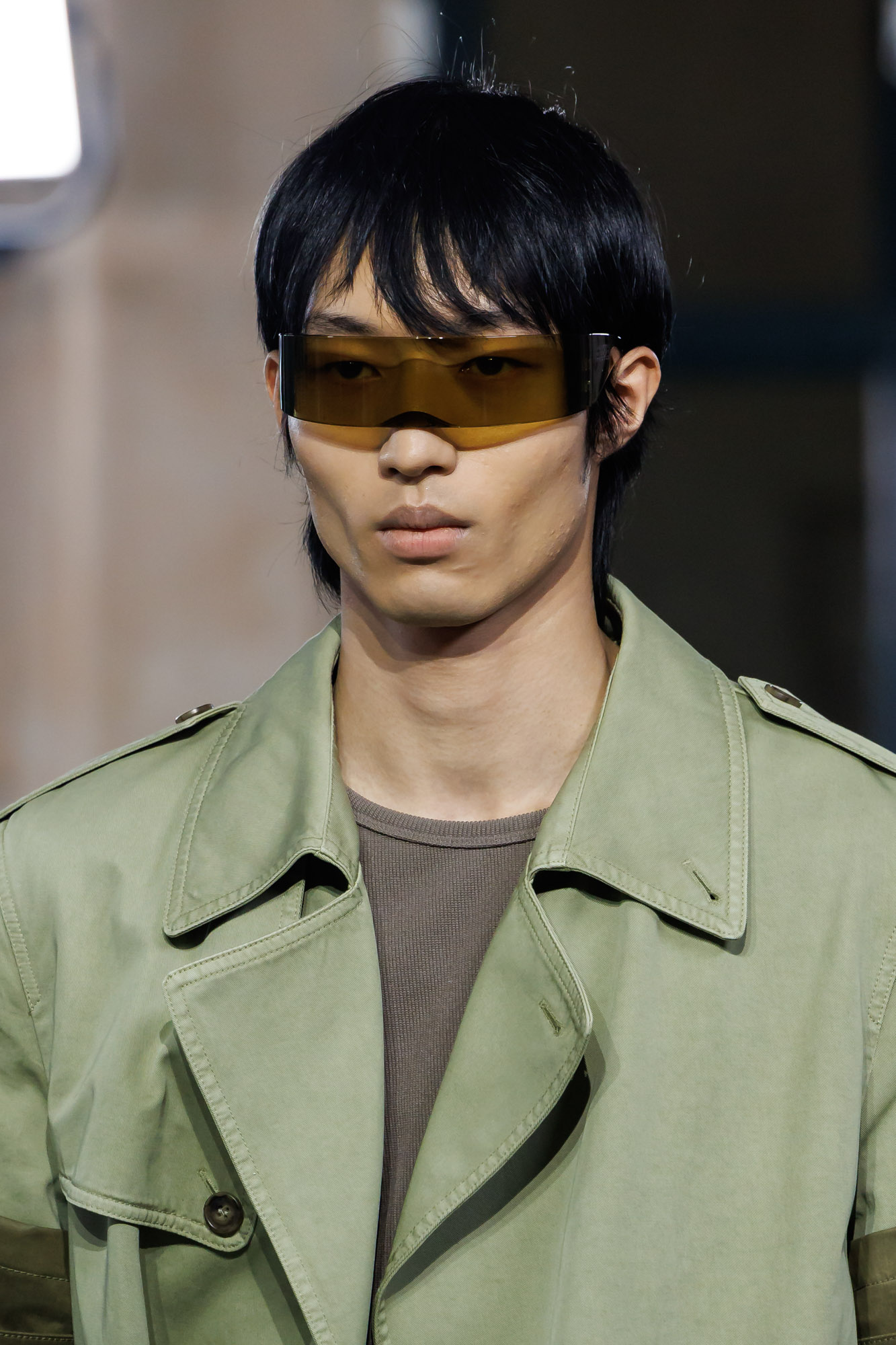 MM6 Maison Margiela 最初於 1997 年作為品牌的「Line 6」推出,目的在提供更貼近日常、性別中立(All-gender)且更具功能性的設計。擷取自工業護目鏡(Workwear Googles)為原型的遮面太陽眼鏡,它呈現出一種極端的掩模輪廓(Ultra-oversized mask silhouette),完全遮蔽配戴者的雙眼與上半部臉部,呈現出一種極端的包裹感(Wraparound)。這次更推出了彩虹般的繽紛色調,搭配性更強。